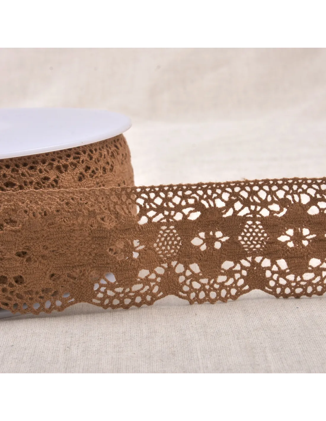 Ruban dentelle coton, motifs fleurs.