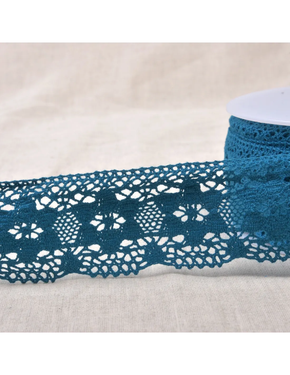 Ruban dentelle coton, motifs fleurs.