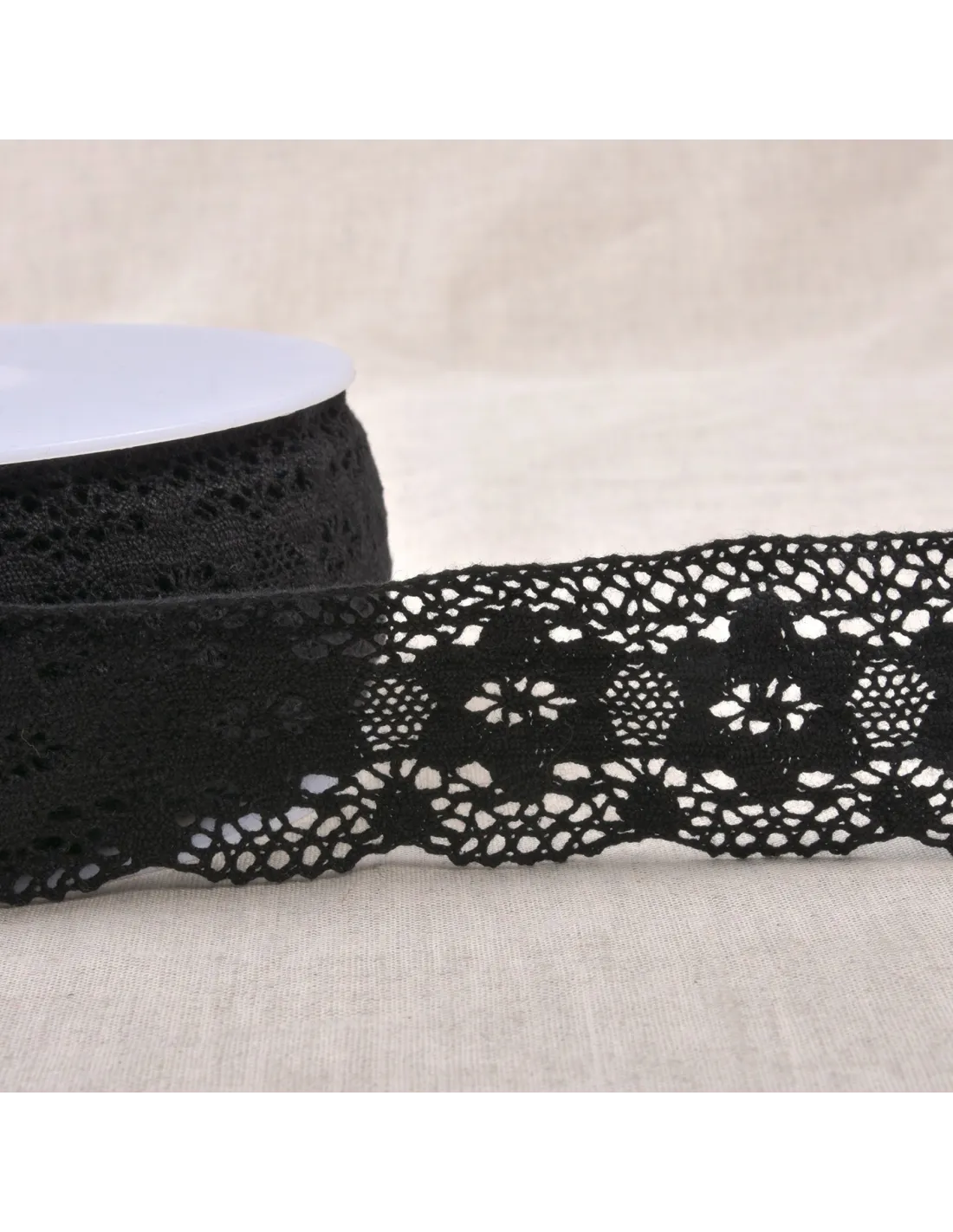 Ruban dentelle coton fleurs, 4,5cm, noir