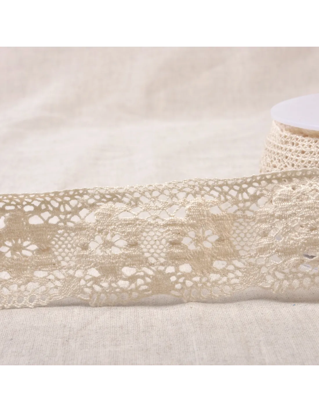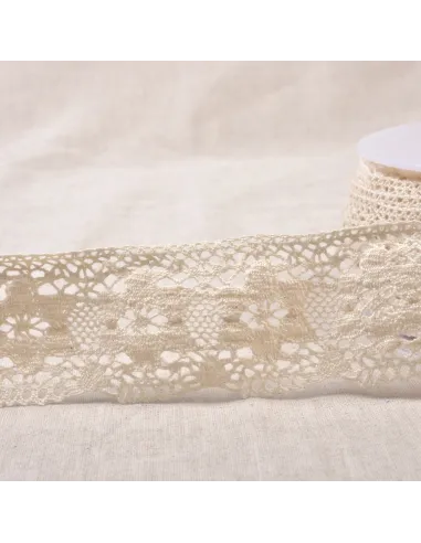 Ruban dentelle coton, motifs fleurs.
