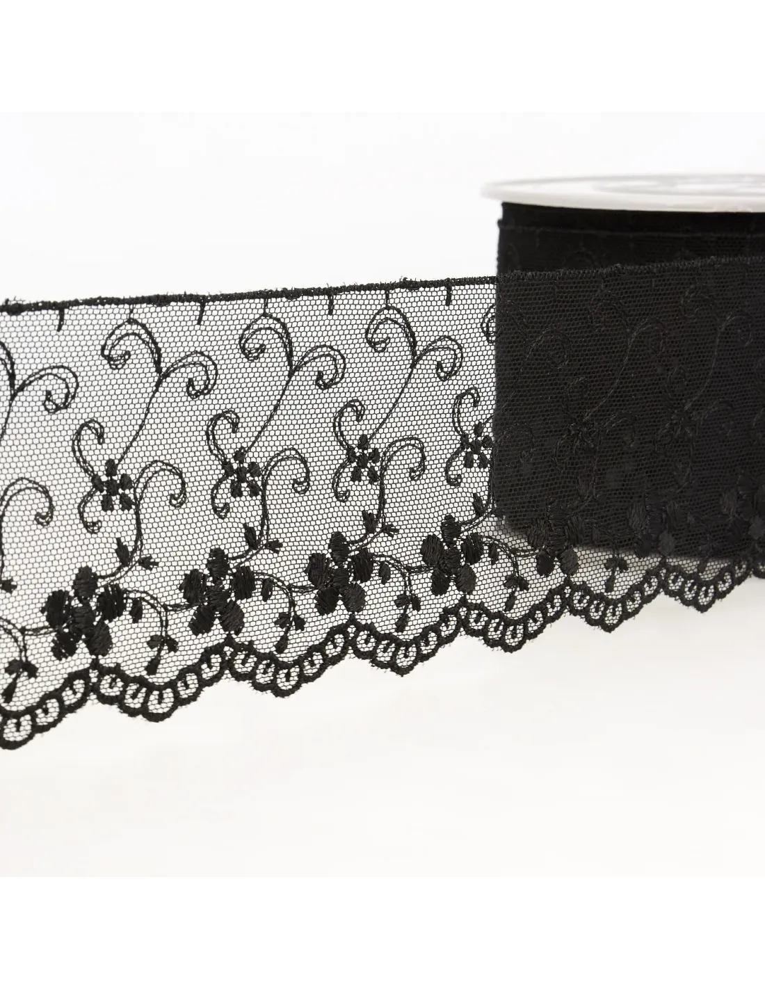 Broderie sur tulle, 70mm, noir