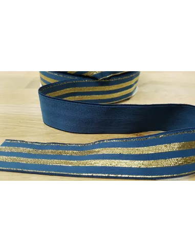 Élastique lurex rayures dorées, 30mm, bleu jean