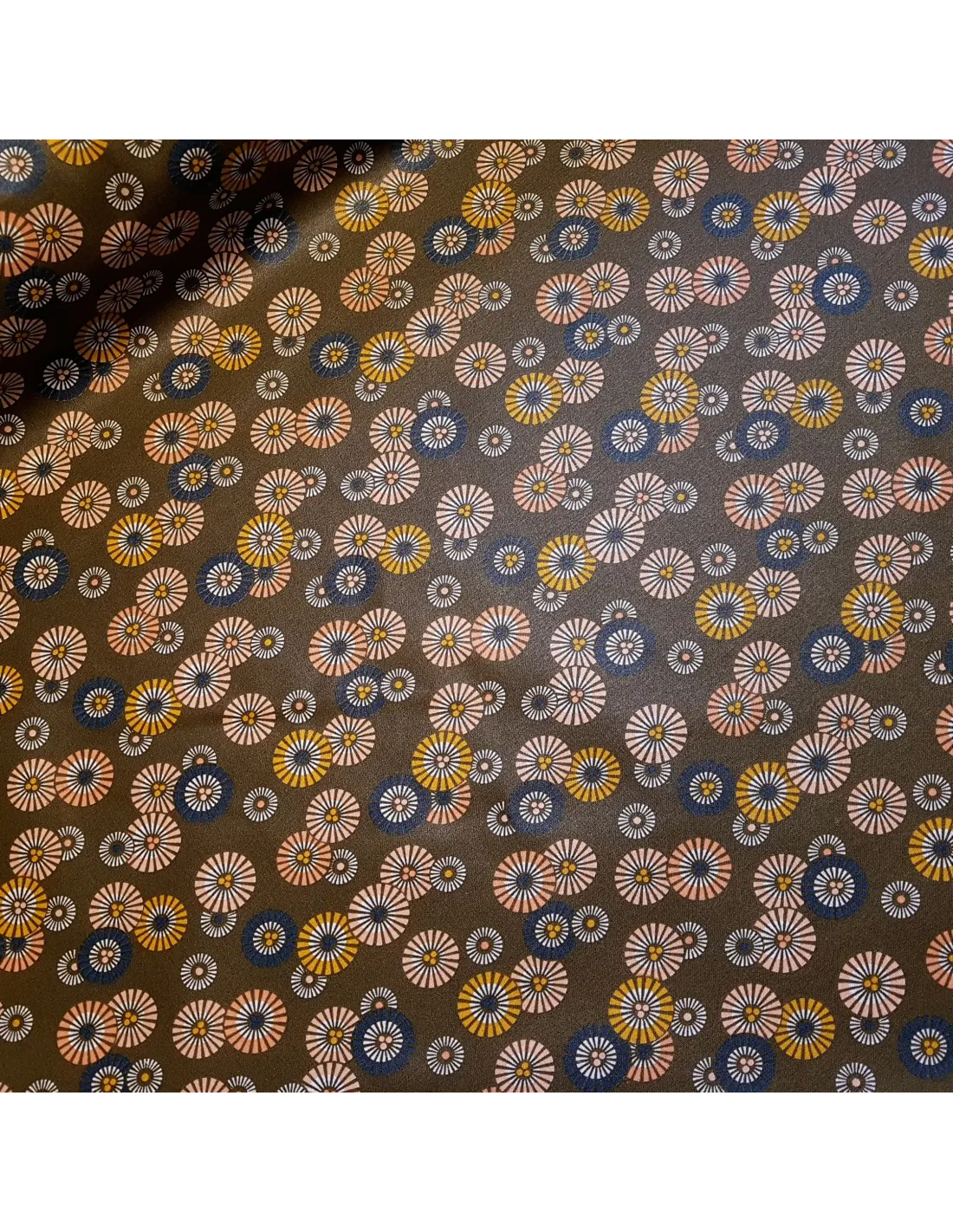 Enduit de coton aux motifs japonisants sur fond vert kaki