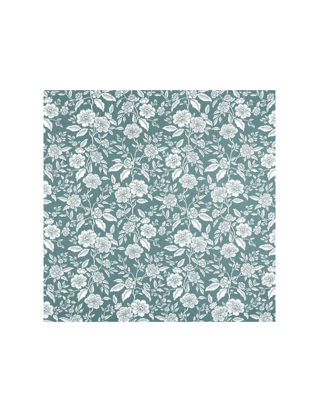 Ce tissu se pare d'un ravissant imprimé floral composé de bouquets de fleurs sauvages et de feuillages détaillés. Le dessin se déploie en finesse, évoquant la délicatesse des motifs anglais traditionnels avec ses fleurs blanches dessinées au trait sur un fond bleu canard profond. Ce contraste élégant apporte une atmosphère à la fois classique et très actuelle à votre intérieur, parfaite pour créer une ambiance douce et accueillante.