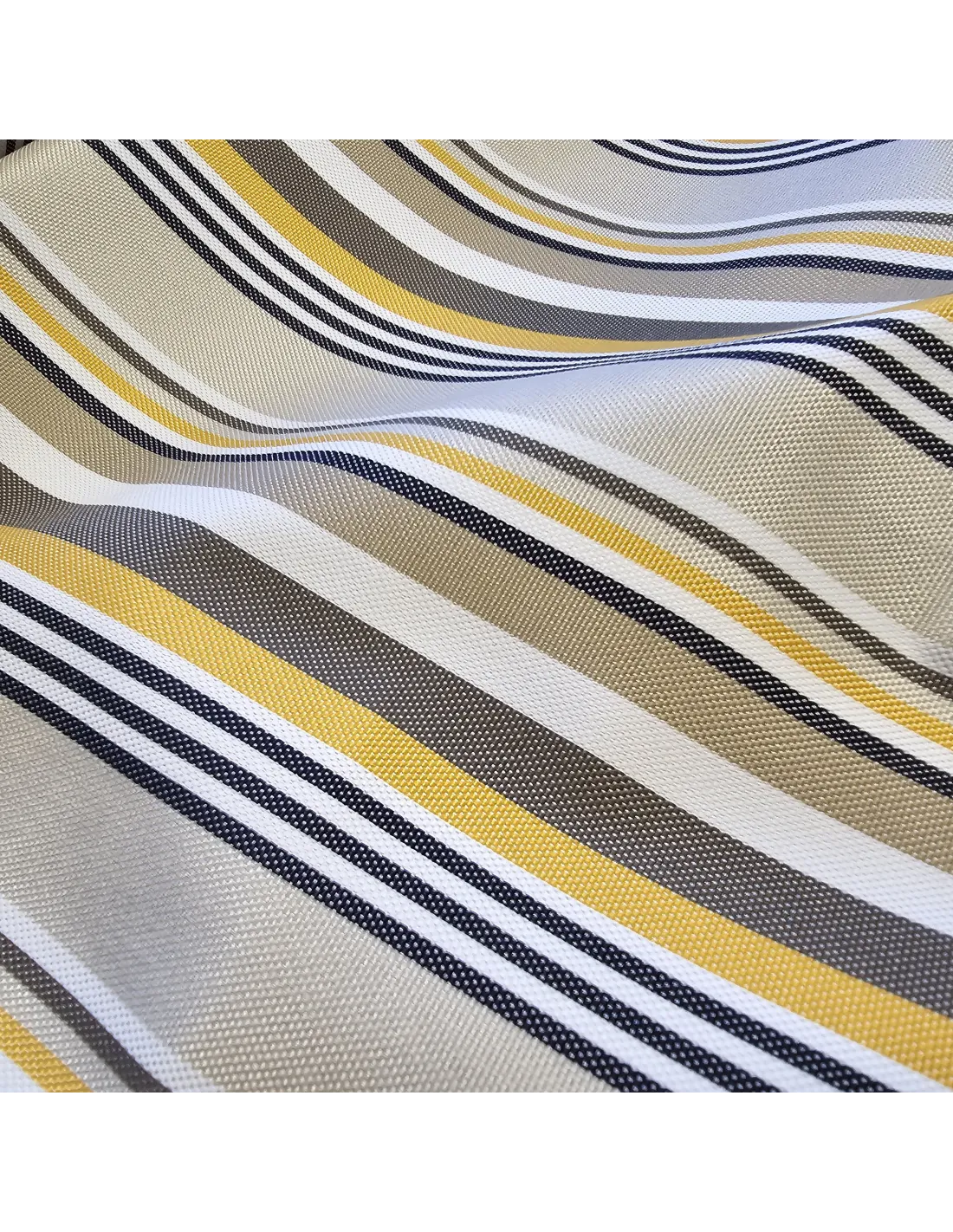 Aménagez votre jardin ou votre terrasse avec cette toile technique d'exception. Spécialement conçue pour l'usage extérieur, elle allie une durabilité remarquable à un design estival rythmé par un jeu de rayures verticales.