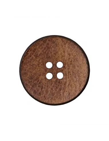 Bouton cuir, 4-trous, recyclé, 18mm, marron