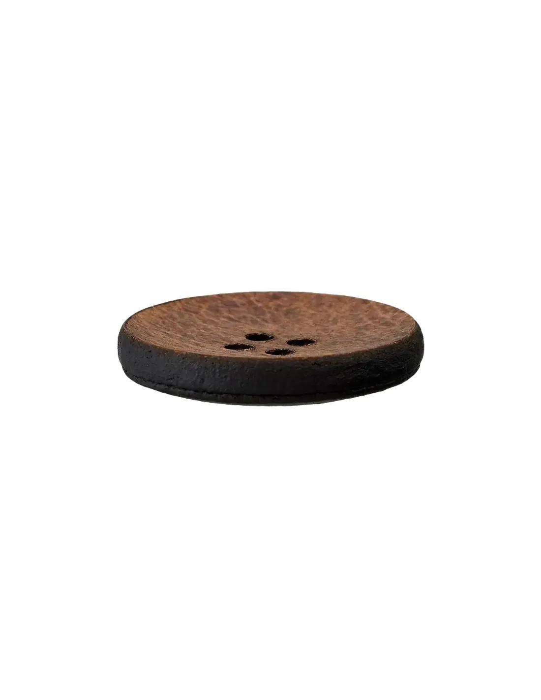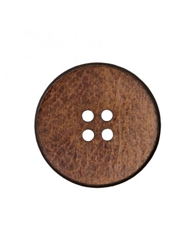 Bouton cuir, 4-trous, recyclé, 23mm, marron