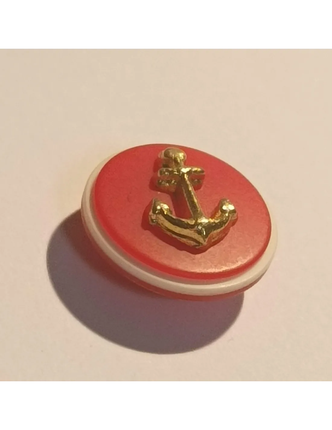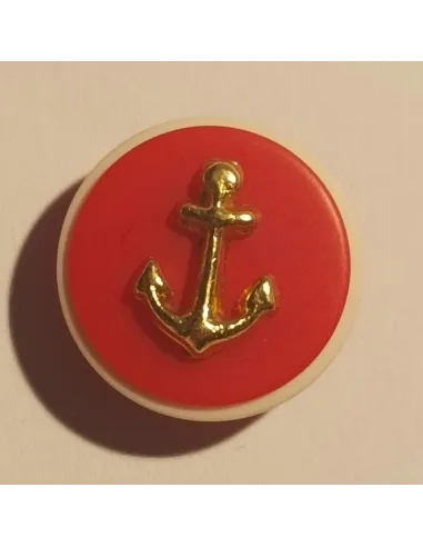 Bouton polyester à pied, rond rouge et ancre dorée