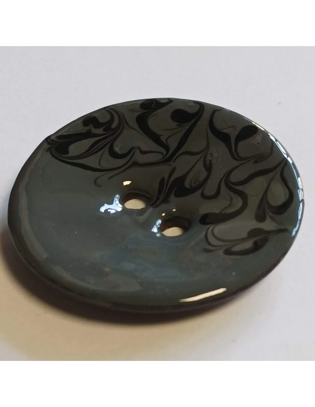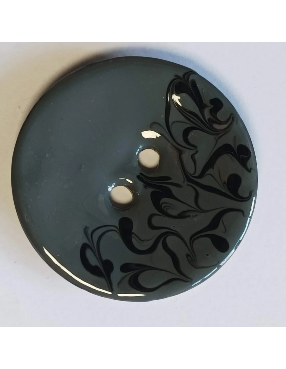 Bouton polyester 2 trous, 30 mm, gris et noir