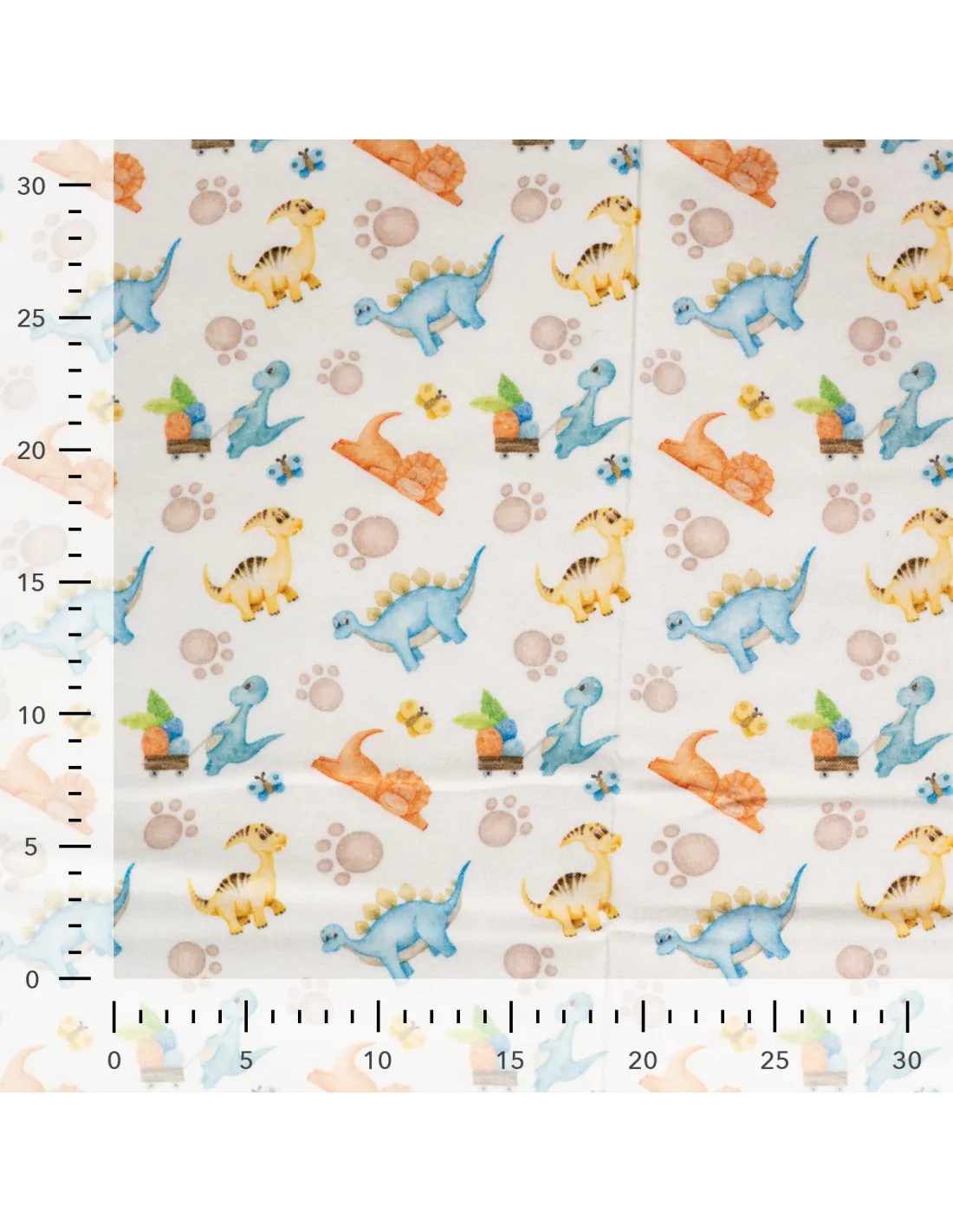 Plongez dans l'ère des dinosaures avec cette flanelle de coton incroyablement douce et chaude ! Parfaite pour les peaux sensibles et les projets pour enfants, elle allie le confort naturel du coton brossé à un motif ludique et coloré grâce à l'impression digitale.