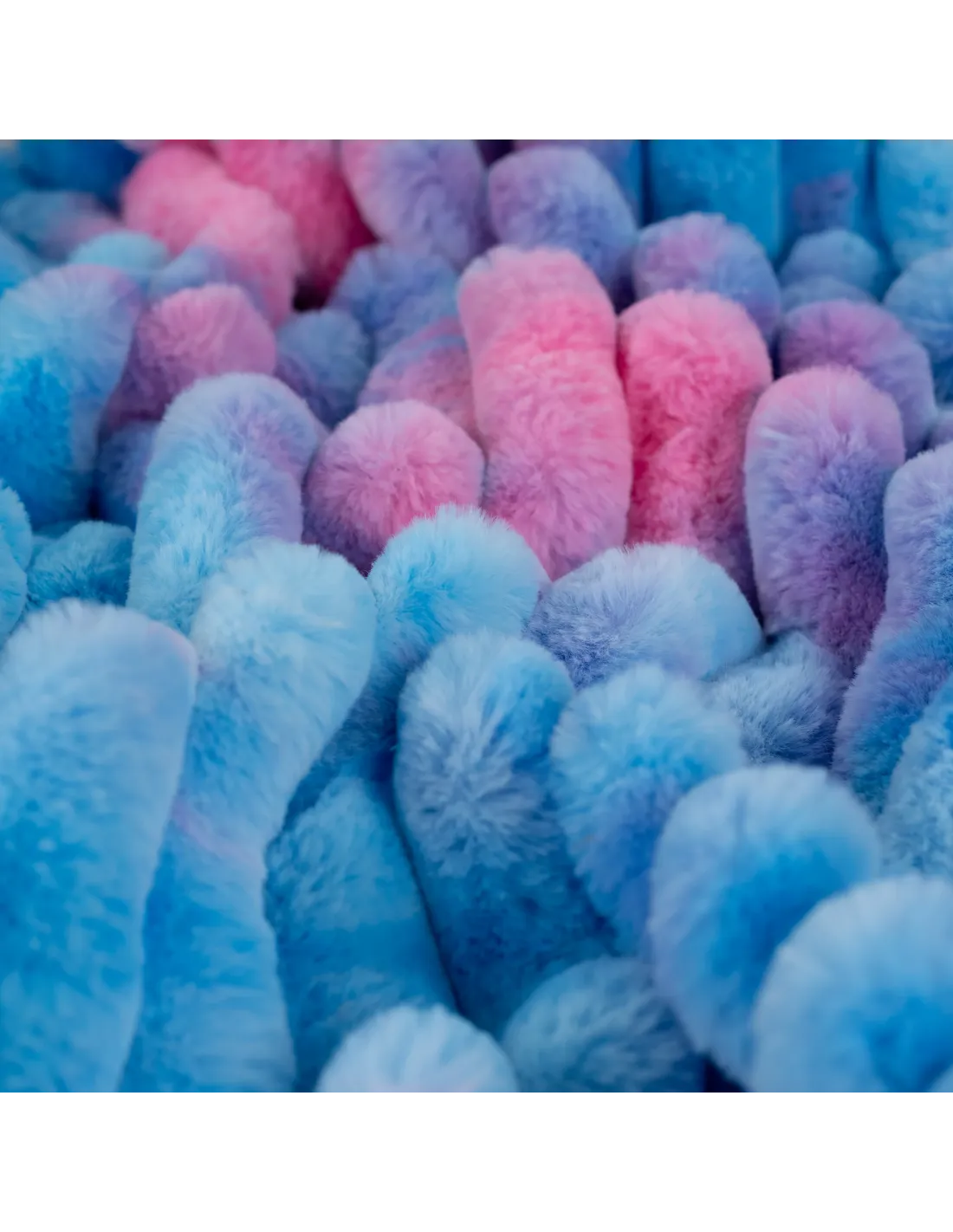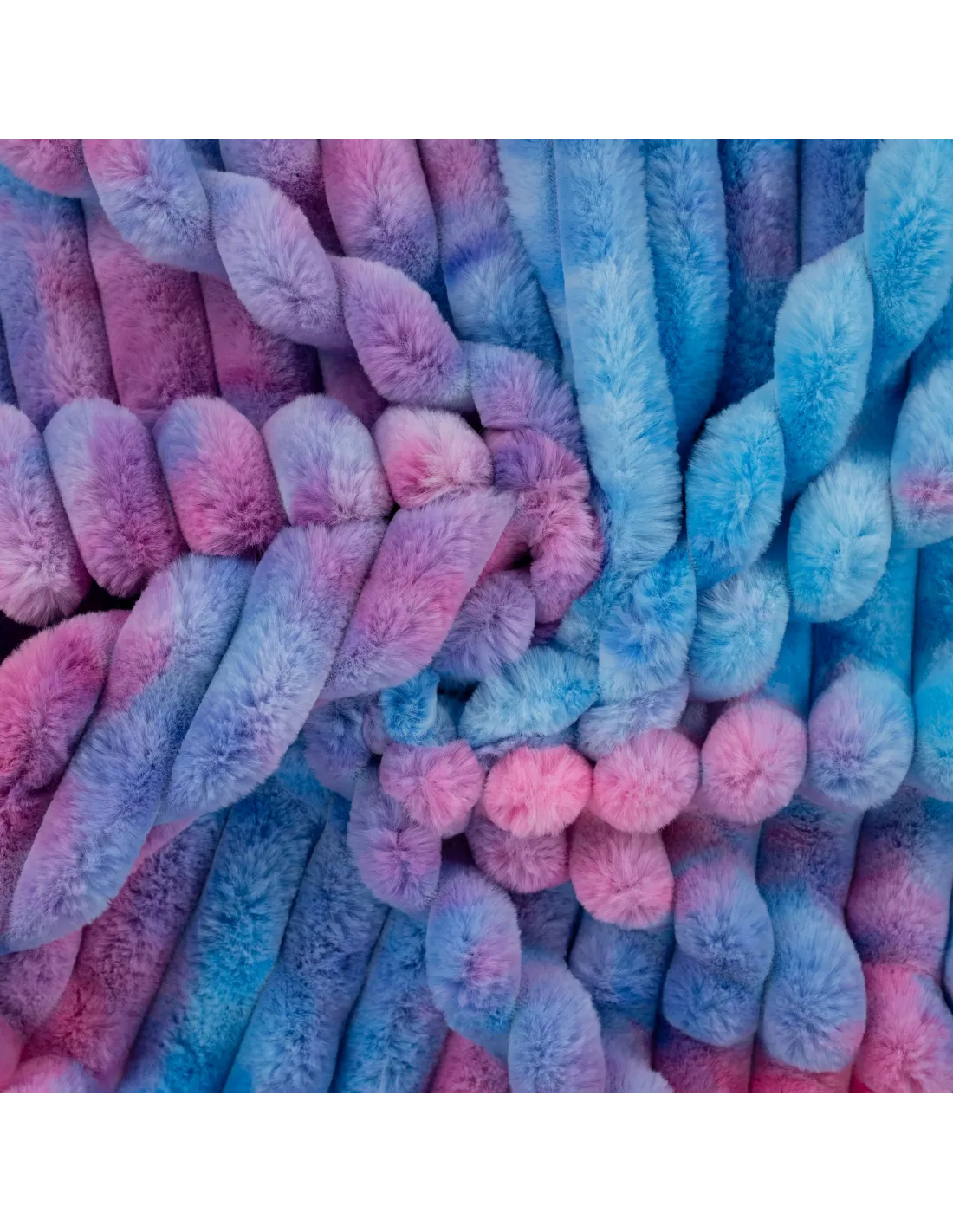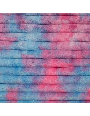 Découvrez le Tissu Polaire Imprimé Tie-Dye "Binkie", un tissu parfait pour la confection de vêtements et d'accessoires chauds et tendance ! Ce tissu est décrit comme une polaire/fourrure ultra-douce et moelleuse, arborant un motif Tie-Dye moderne dans les tons de Bleu et de Violet ("Purple Blue"). Bien que l'on puisse l'assimiler à une fausse fourrure pour son côté très doux et chaud, il est techniquement répertorié comme un tissu Polaire de type "Binkie".