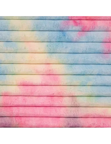 Préparez-vous à illuminer vos créations avec le Tissu Polaire Imprimé Tie-Dye "Binkie" ! Ce tissu est une véritable célébration de la couleur. Bien que doux et moelleux comme une fourrure courte, il est techniquement un tissu Polaire de qualité, arborant un motif Tie-Dye psychédélique aux couleurs de l'Arc-en-ciel ("Rainbow").