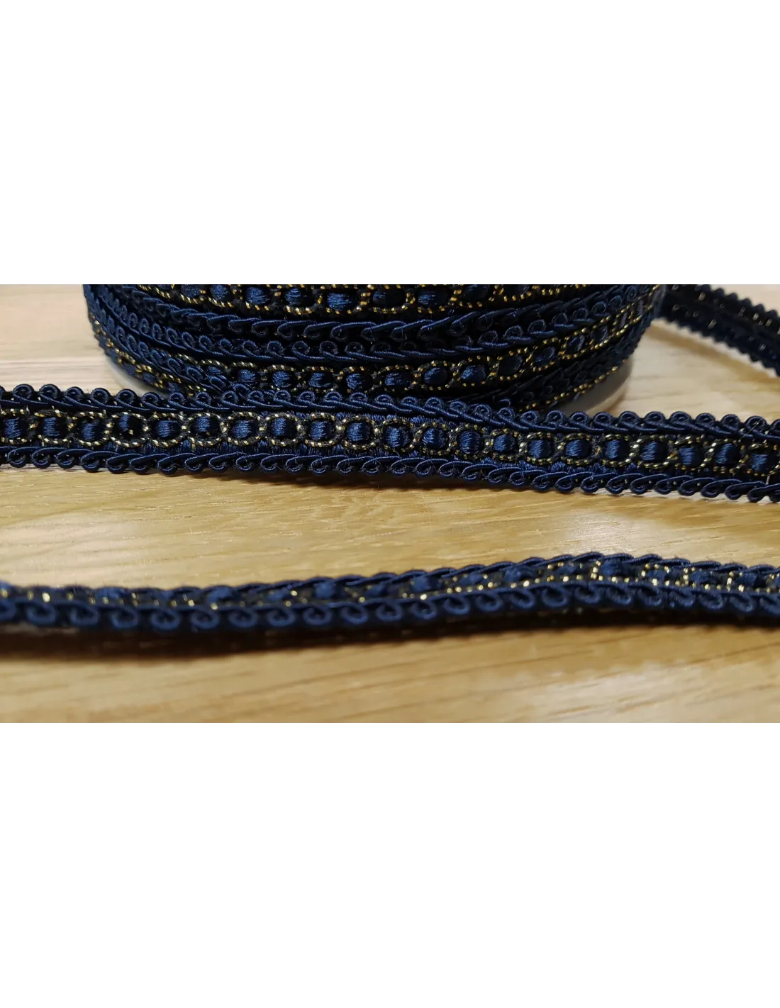 Galon robe bleu marine avec petit fil doré. Idéal pour personnaliser toutes vos créations.