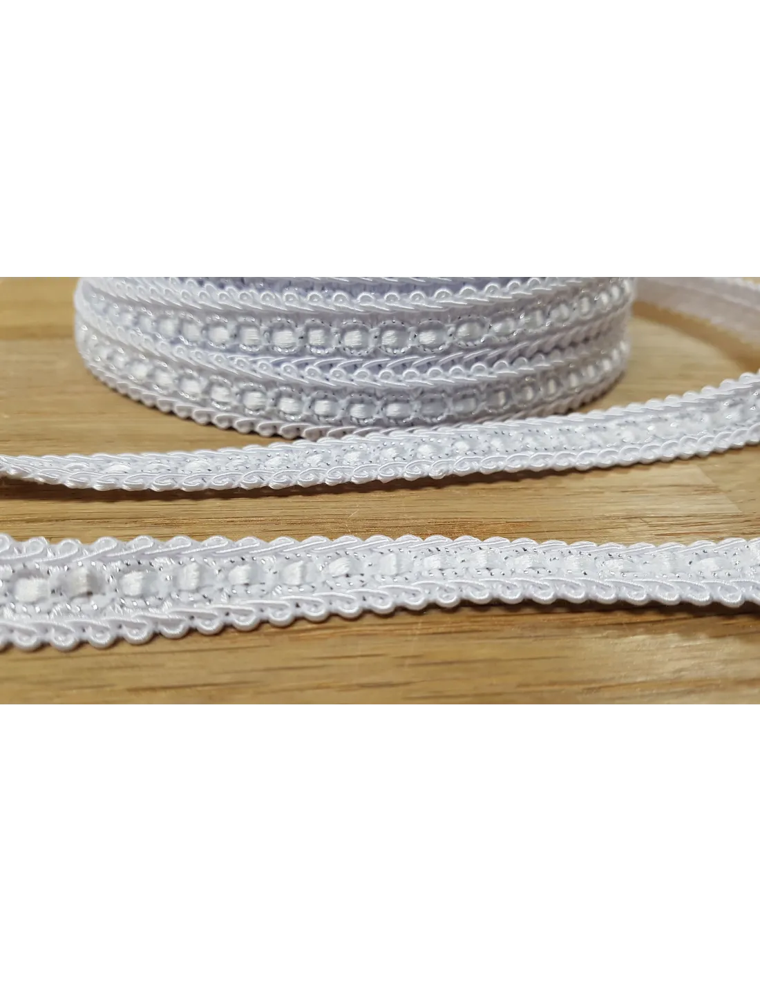 Galon robe lurex, 12mm, blanc