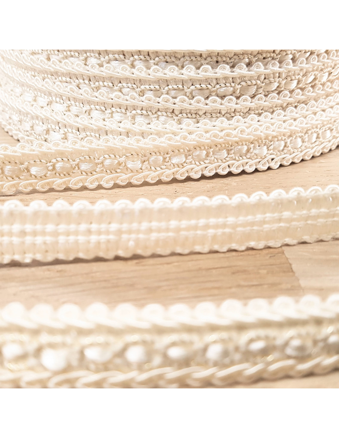 Galon robe écru avec petit fil doré. Idéal pour personnaliser toutes vos créations.