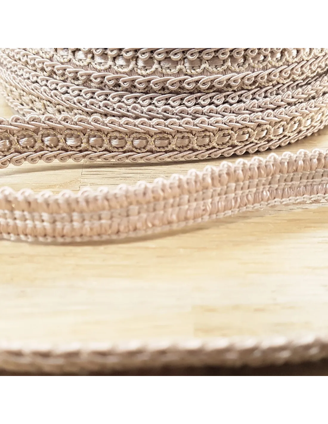Galon robe beige avec petit fil doré. Idéal pour personnaliser toutes vos créations.
