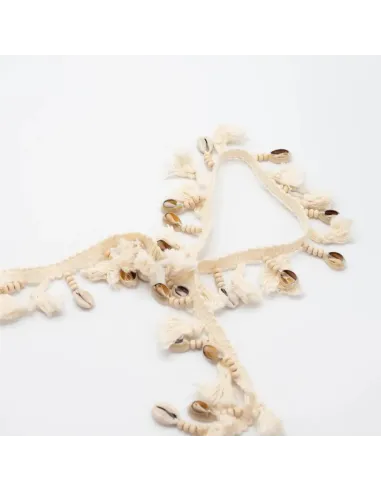 Apportez une touche d'évasion et de naturel à toutes vos créations avec ce superbe galon fantaisie ! Alliant l'authenticité des véritables coquillages (cauris) à la douceur de petits pompons en coton, c'est l'accessoire indispensable pour personnaliser vos projets avec un style bohÚme-chic irrésistible.