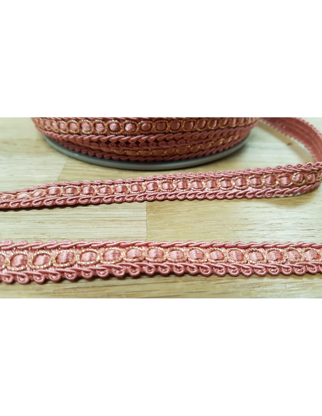 Galon robe rose poudré avec petit fil doré. Idéal pour personnaliser toutes vos créations.