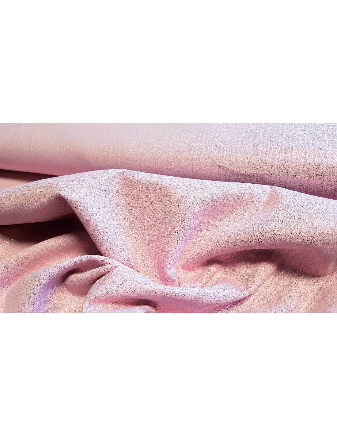Tissu double gaze rose avec des paillettes roses. Du plus bel effet !