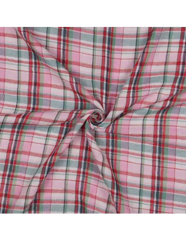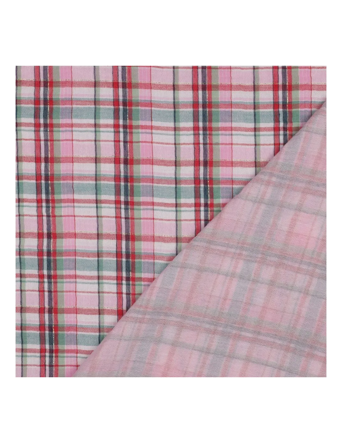 Double gaze coton, carreaux roses et verts. Douce, légère, aérée. Idéale vêtements, accessoires, déco, bébés.