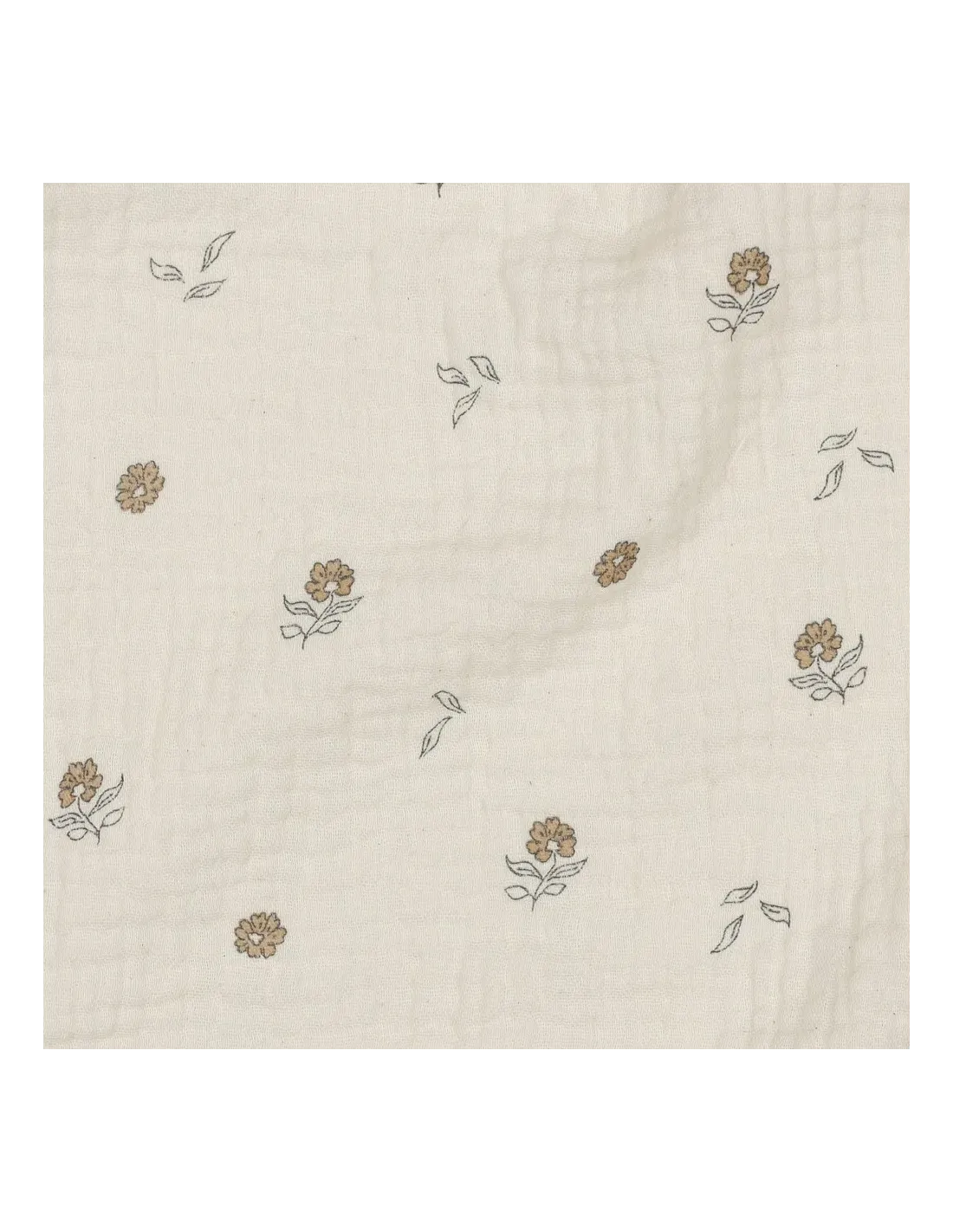 Couleurs et Rendu : Le fond est d'un Blanc Cassé ou Crème Naturel. Le motif imprimé présente des petites fleurs de couleur Ocre/Brun Clair et des feuilles en Gris/Taupe, créant un look très doux et naturel.