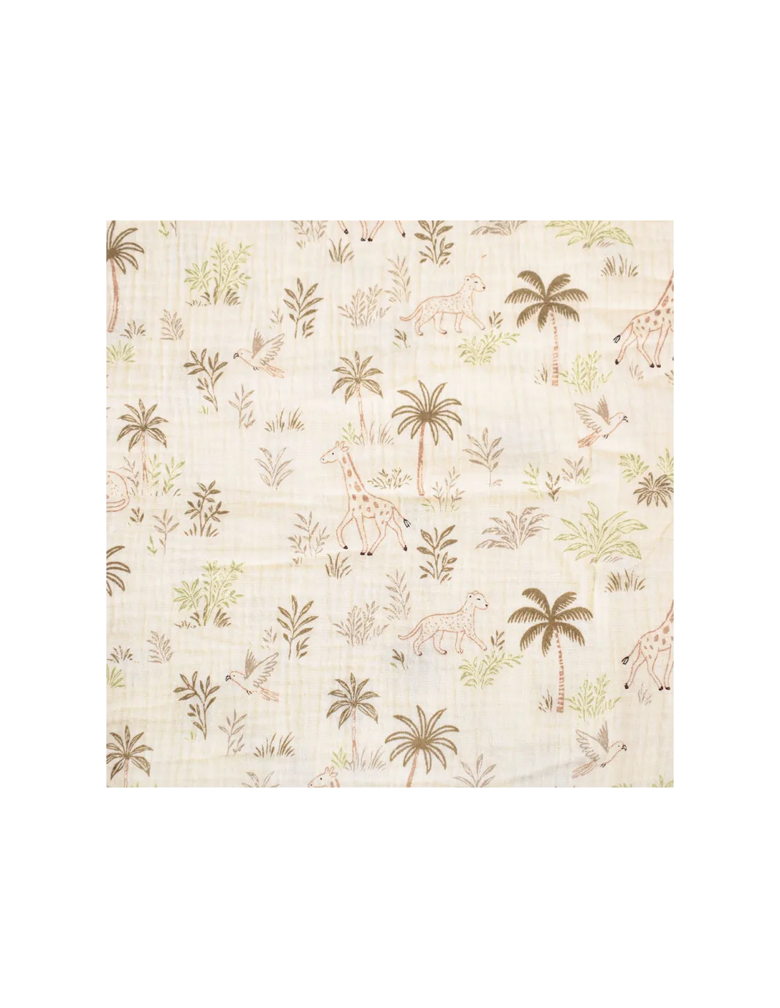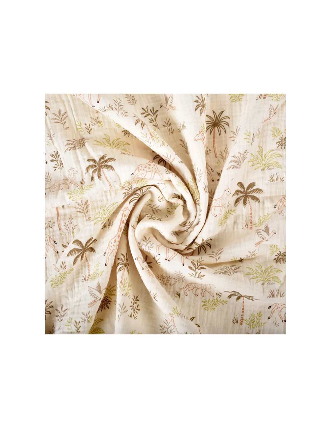 🦒 Double Gaze de Coton Impression Savane – Un Voyage Douillet au Cœur de la Nature