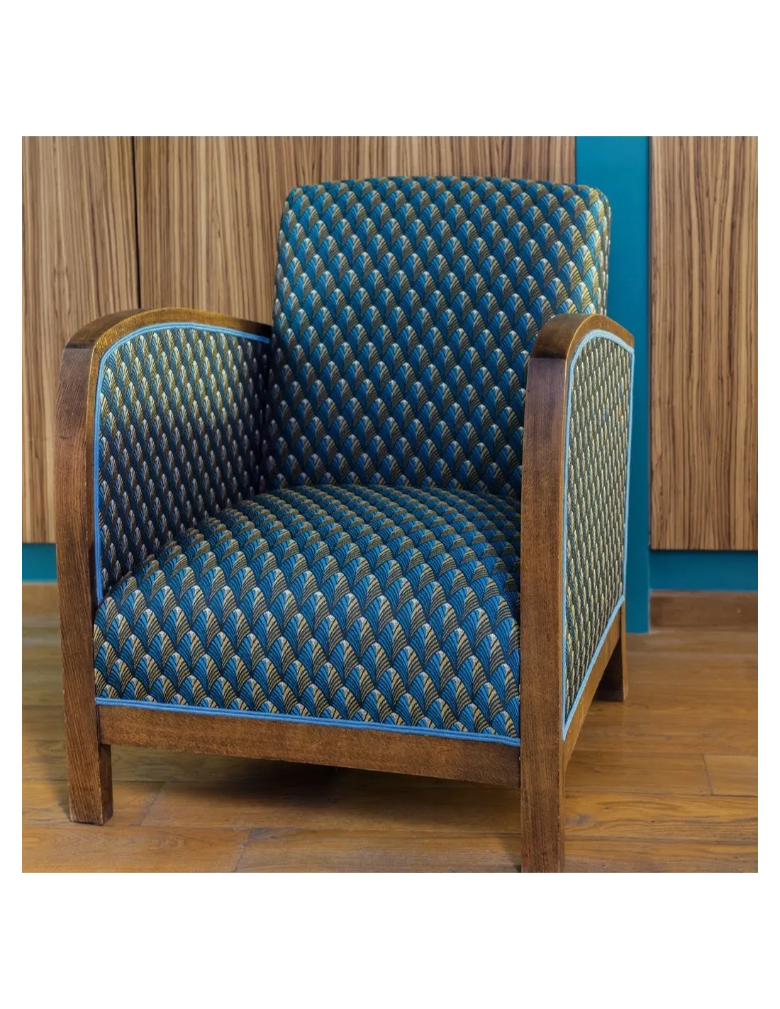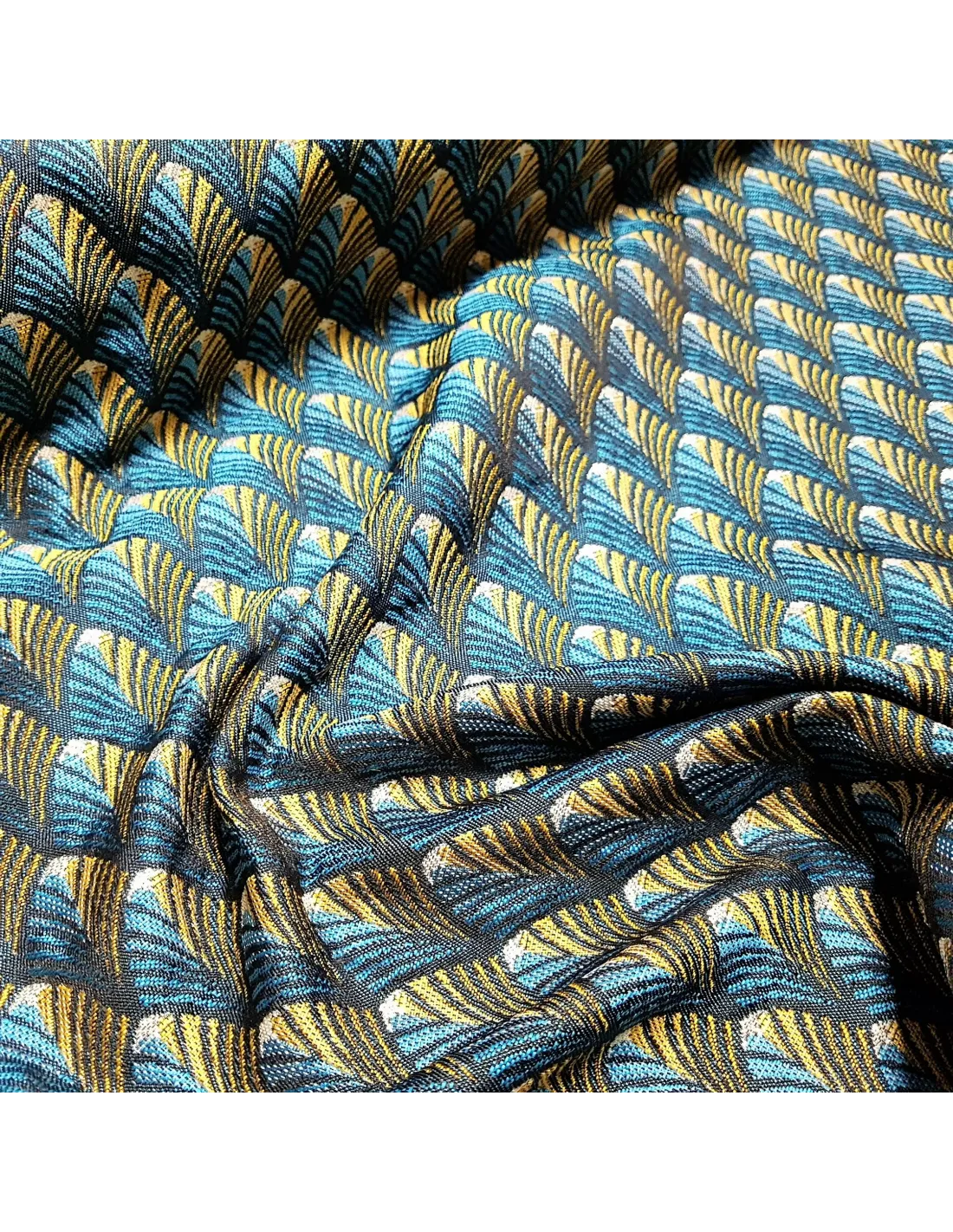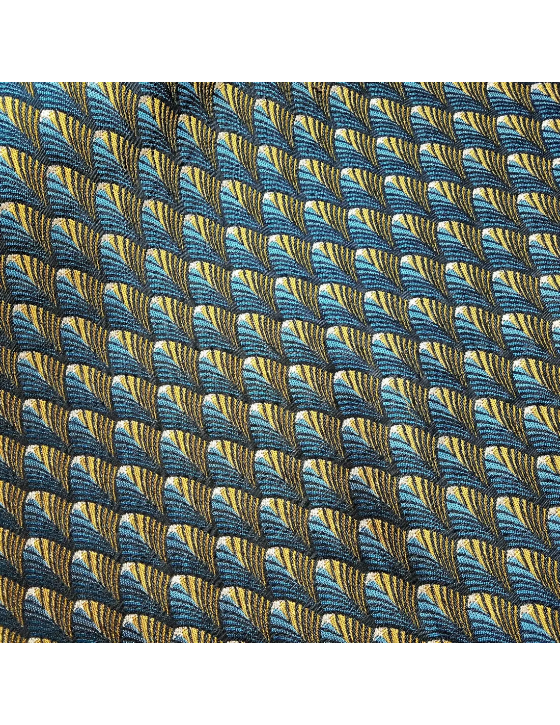 Jacquard gobelin art déco gatsby dans les tons bleus canard et or.