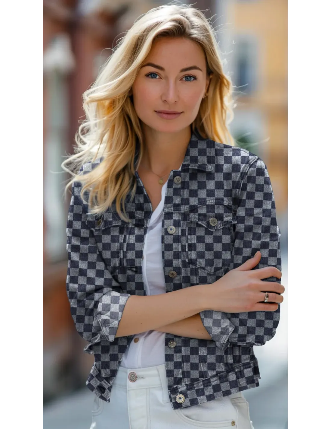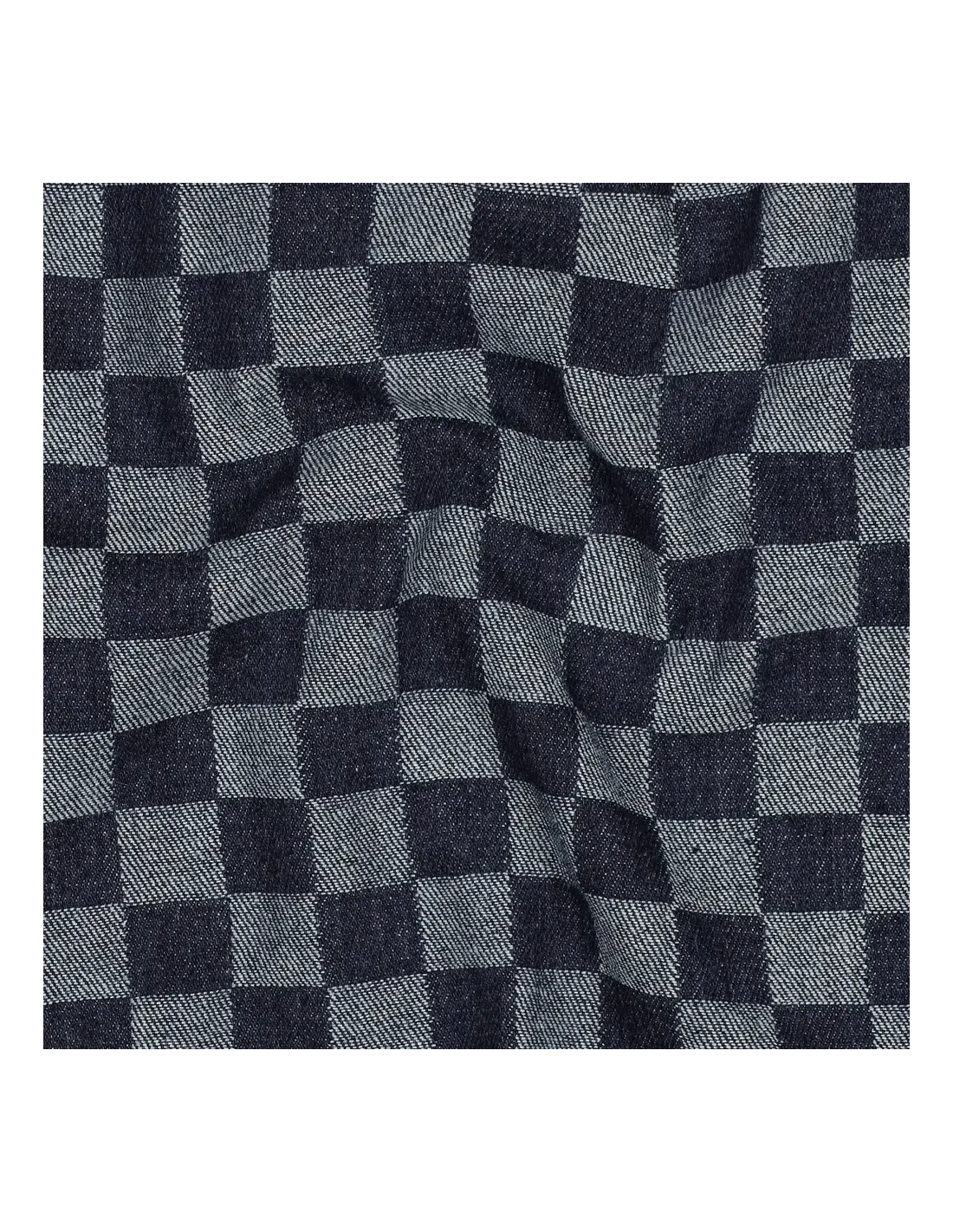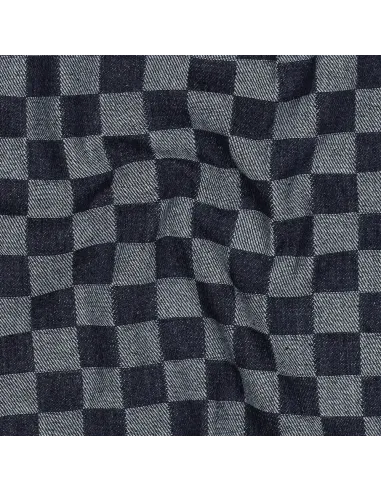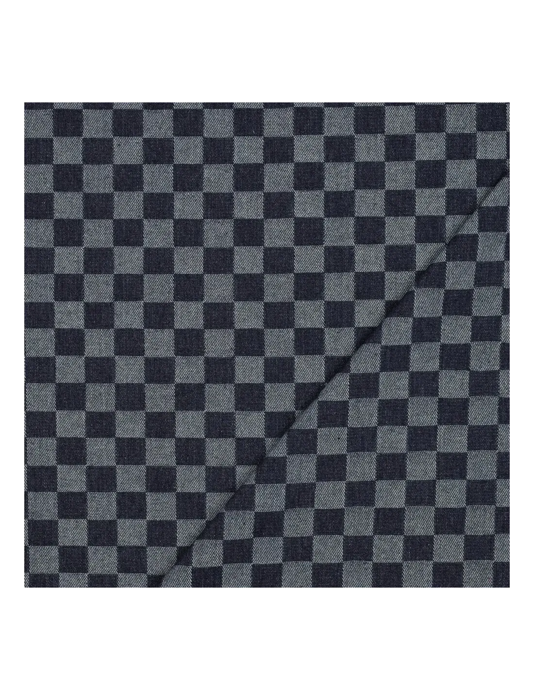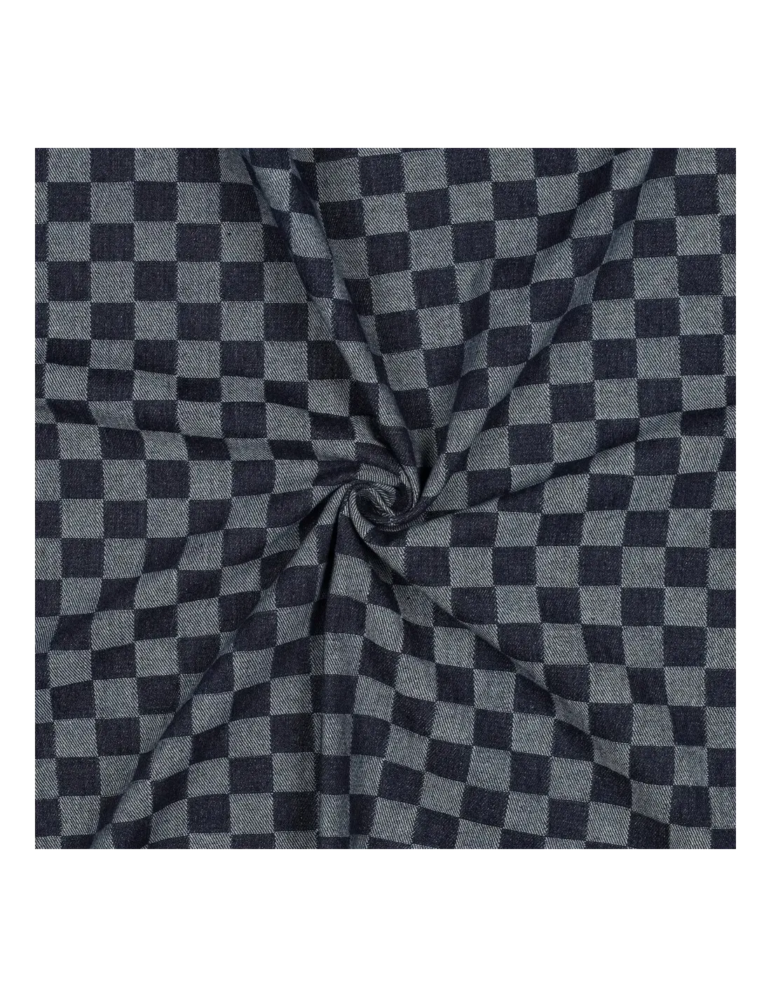 Découvrez ce tissu jacquard denim unique qui revisite le classique motif damier avec style. Ce motif est tissé directement dans la matière, créant un élégant damier bicolore en blanc et marine qui ne s'estompera pas. Le tissage jacquard confère au tissu un relief discret et une texture agréable.