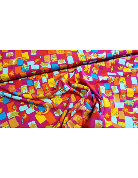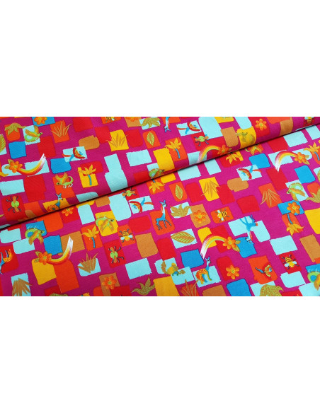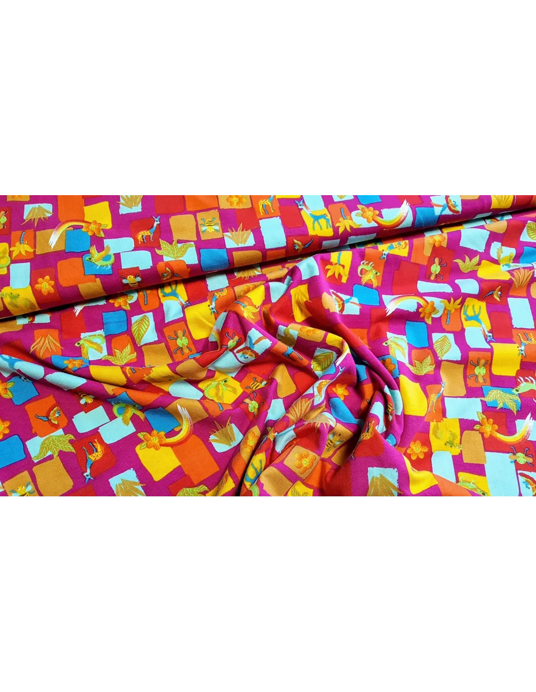 Jersey de coton à imprimés animaux mignons sur fond rose fuschia.