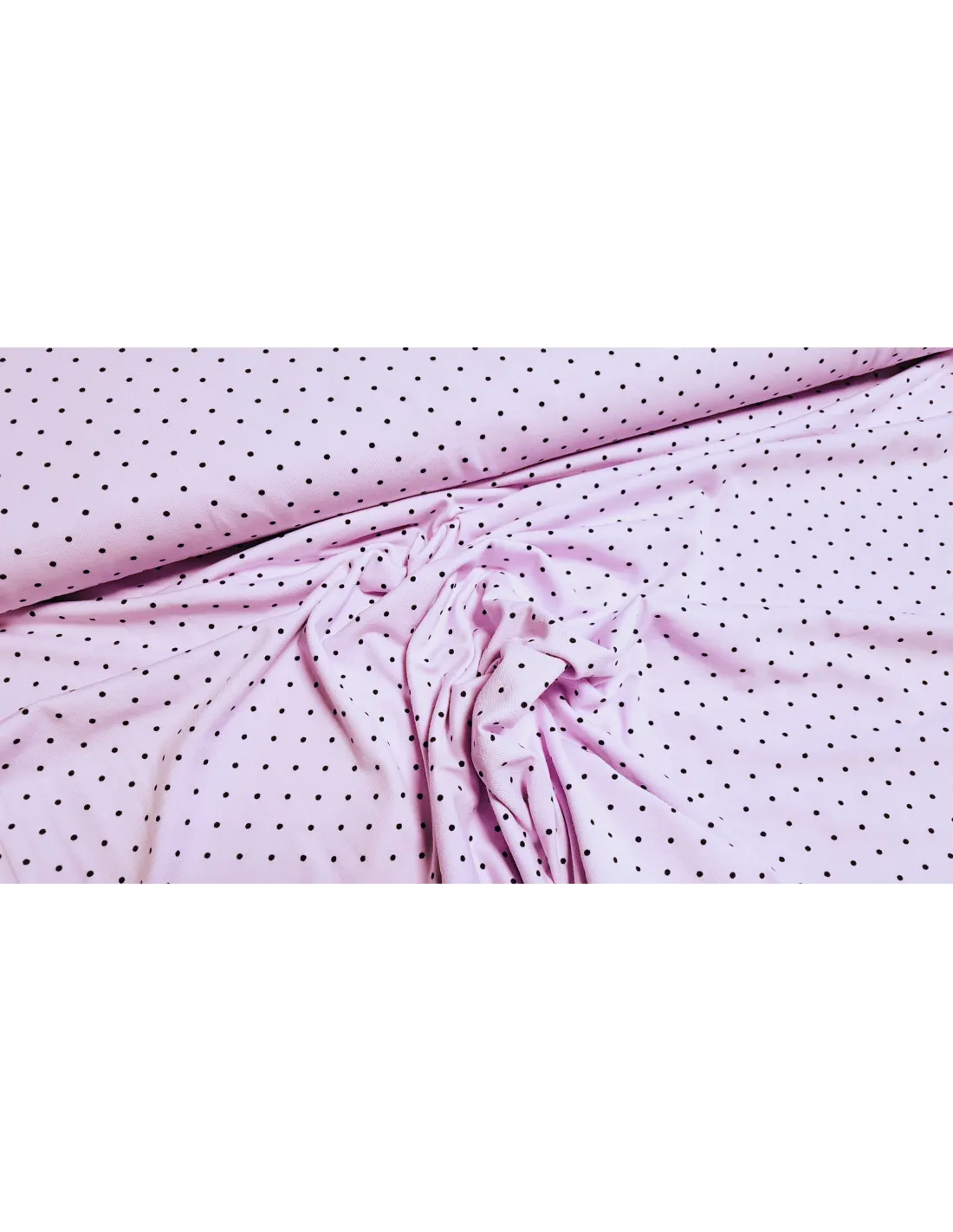 Jersey de coton à imprimés petits pois noirs sur fond rose.