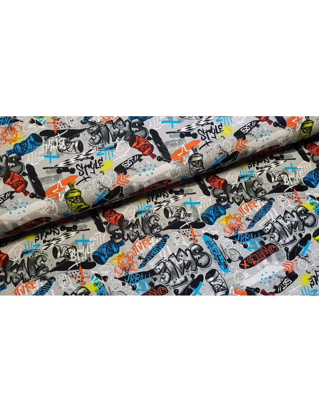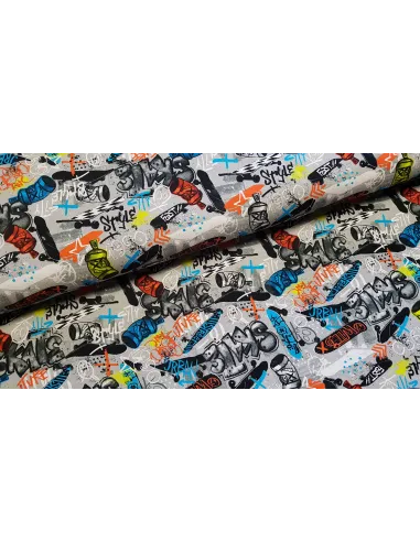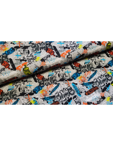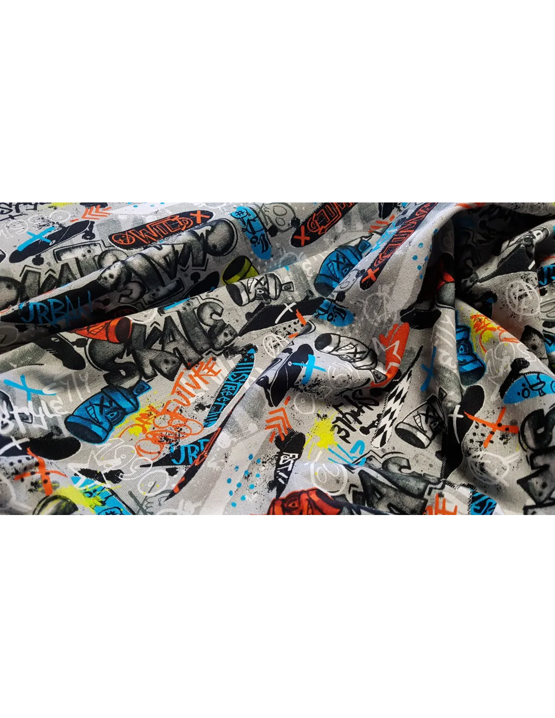 Jersey de coton à imprimés artiste graffiti sur fond gris.