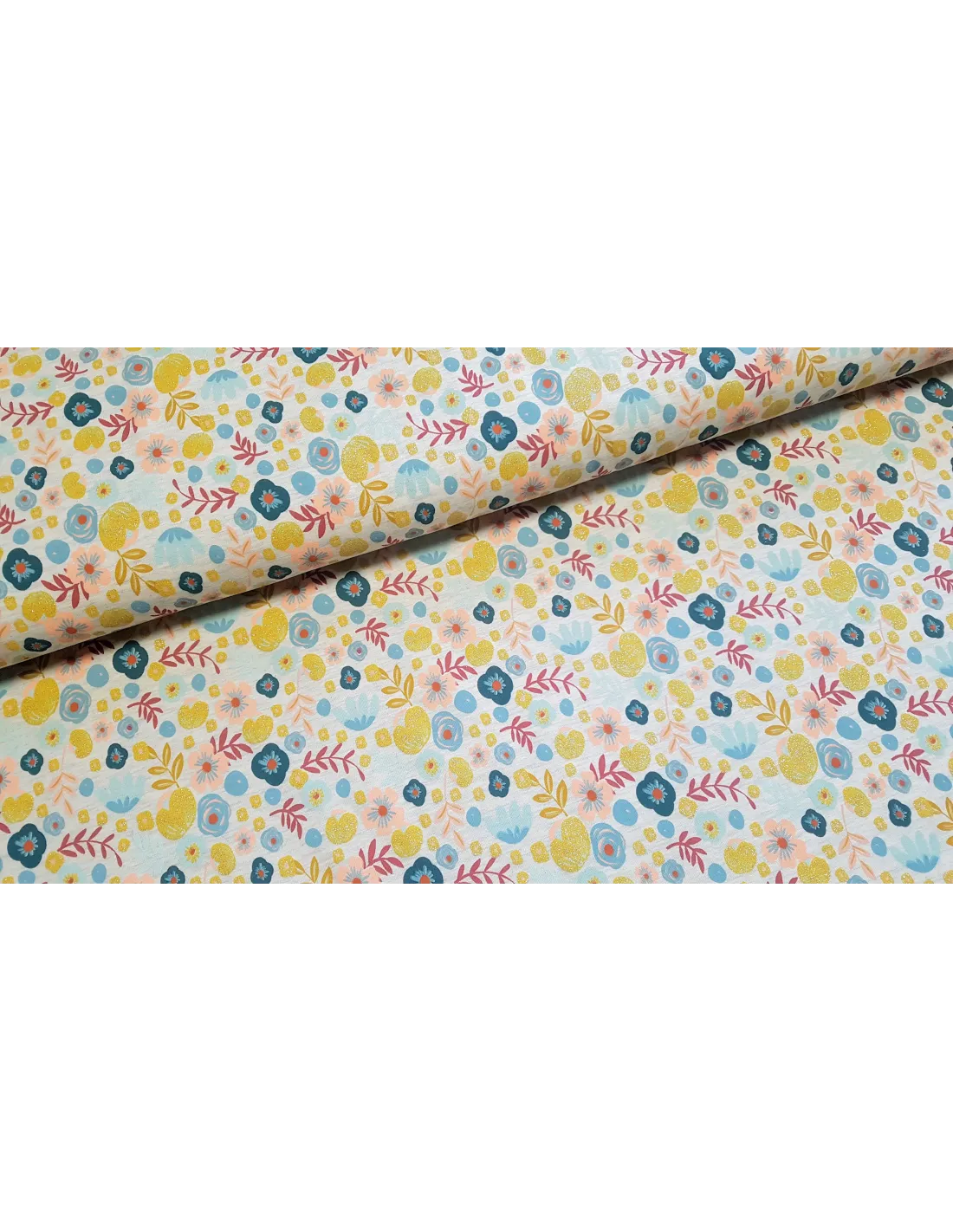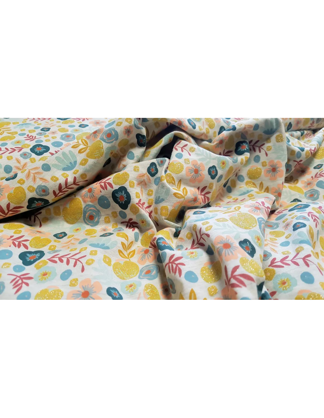 Jersey de coton à imprimés fleurs avec lurex sur fond gris clair