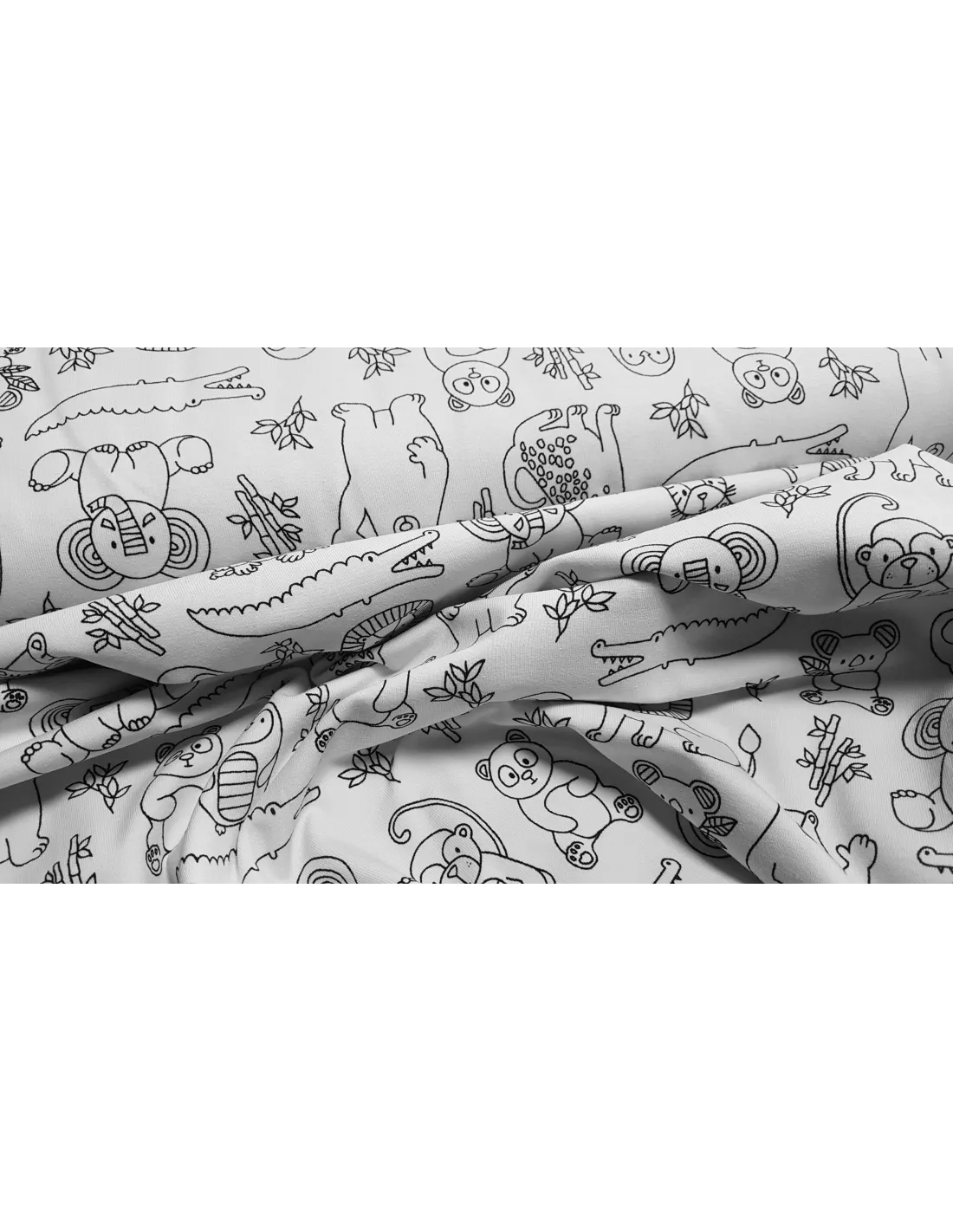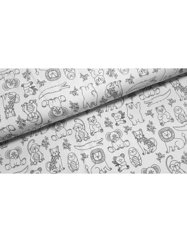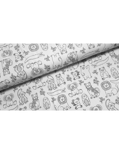 Jersey de coton impression animaux du zoo sur fond blanc. Superbe pour faire un t-shirt, une robe ou tout ce qui vous plaira !