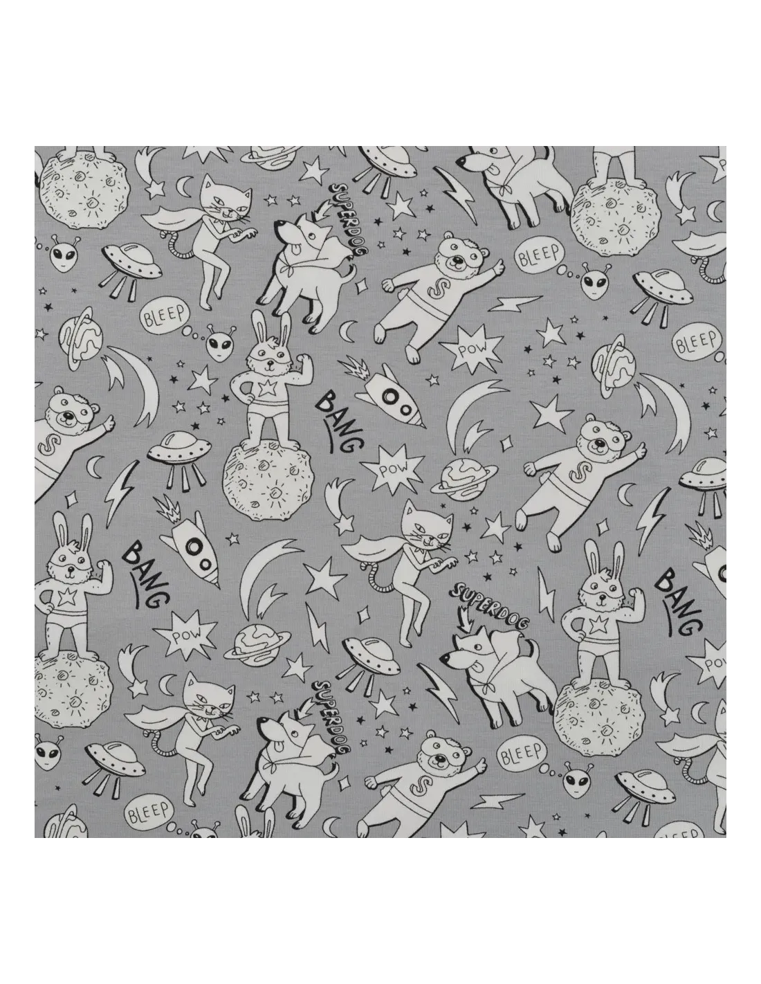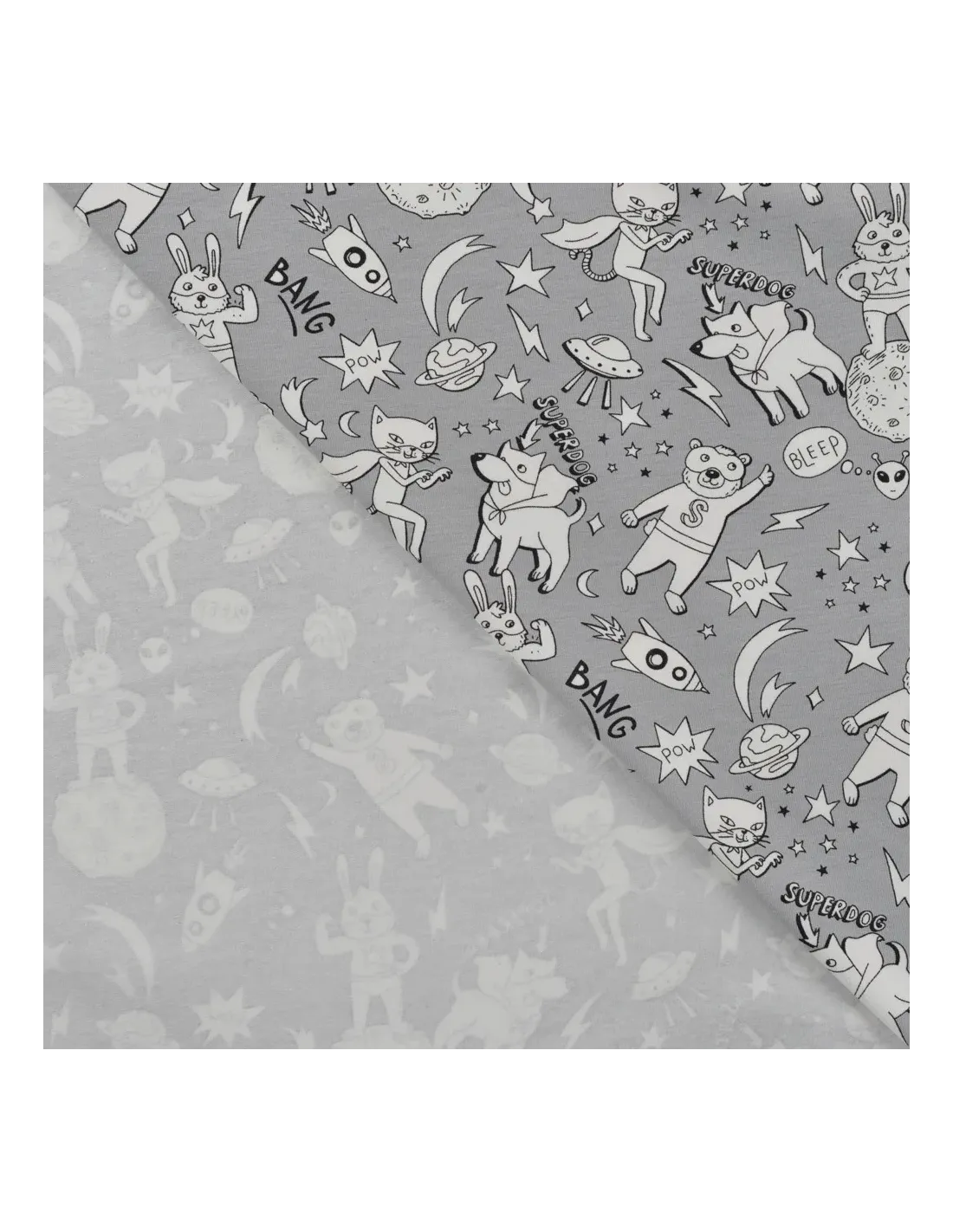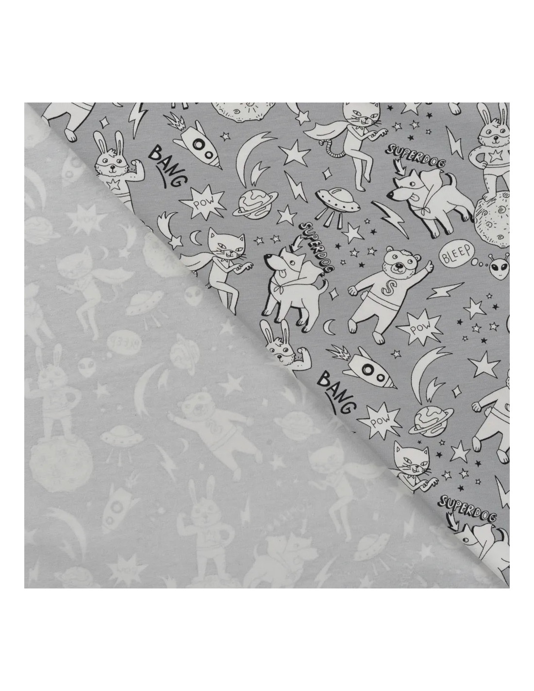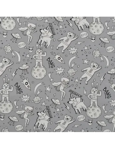 Jersey de coton imprimé super ourson. Il change couleur au soleil ! Superbe pour faire un t-shirt, une robe ou tout ce qui vous plaira !