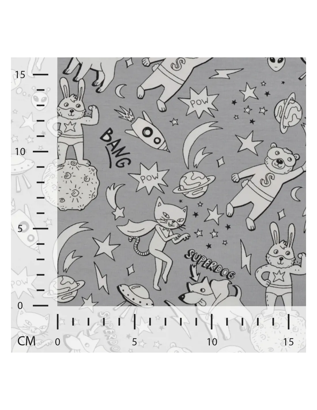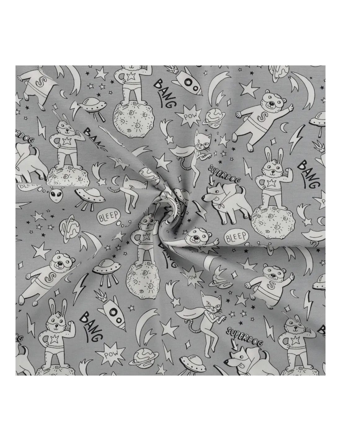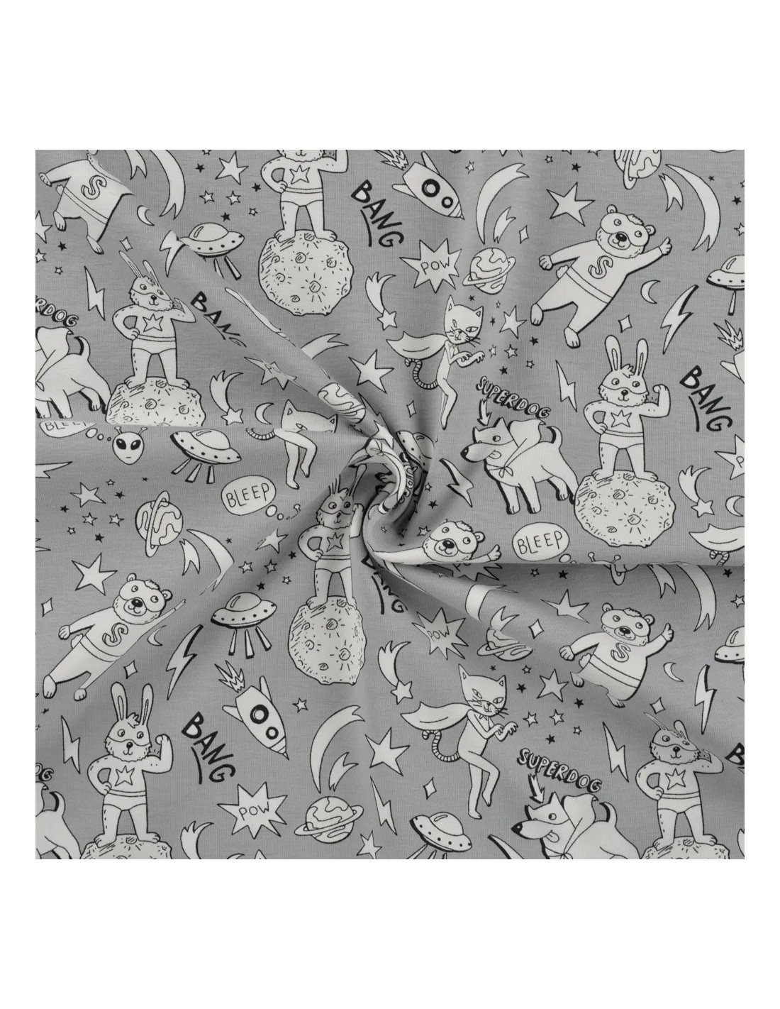 Jersey de coton imprimé super ourson. Il change couleur au soleil ! Superbe pour faire un t-shirt, une robe ou tout ce qui vous plaira !