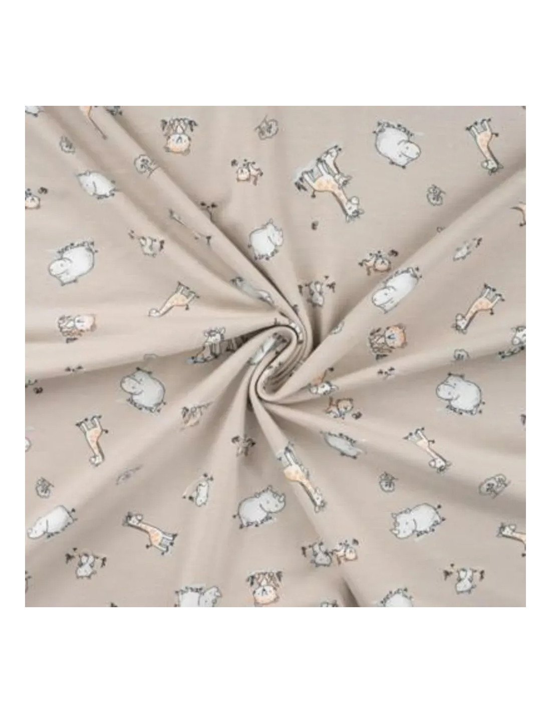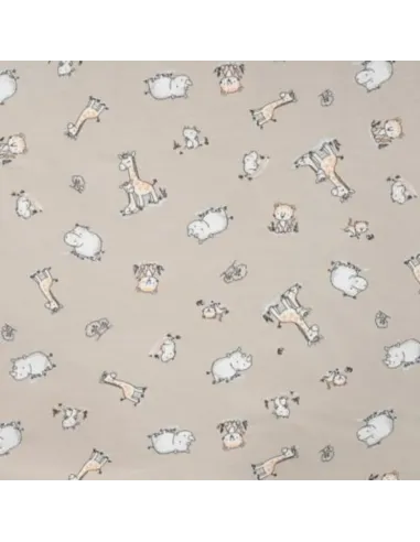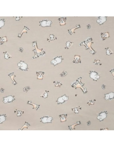 Jersey de coton imprimé motifs girafes, hippopotames. Superbe pour faire un t-shirt, une robe ou tout ce qui vous plaira !