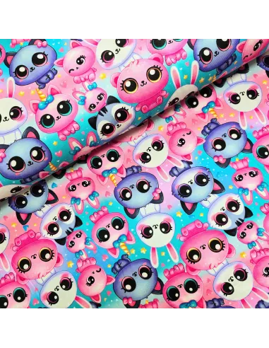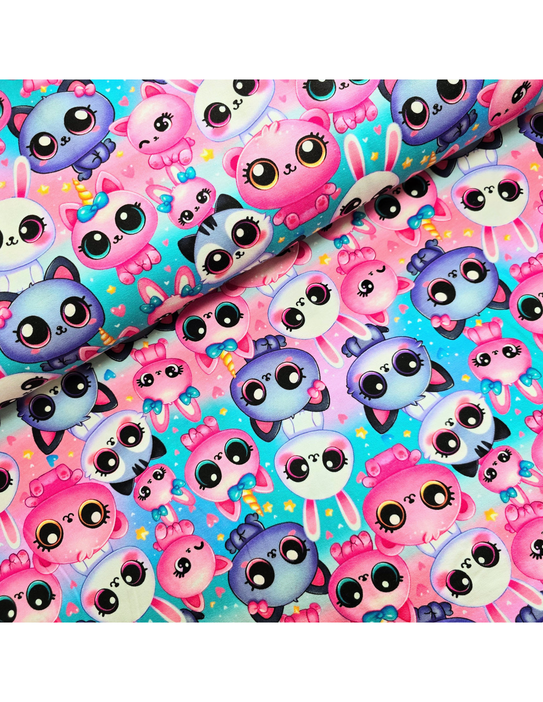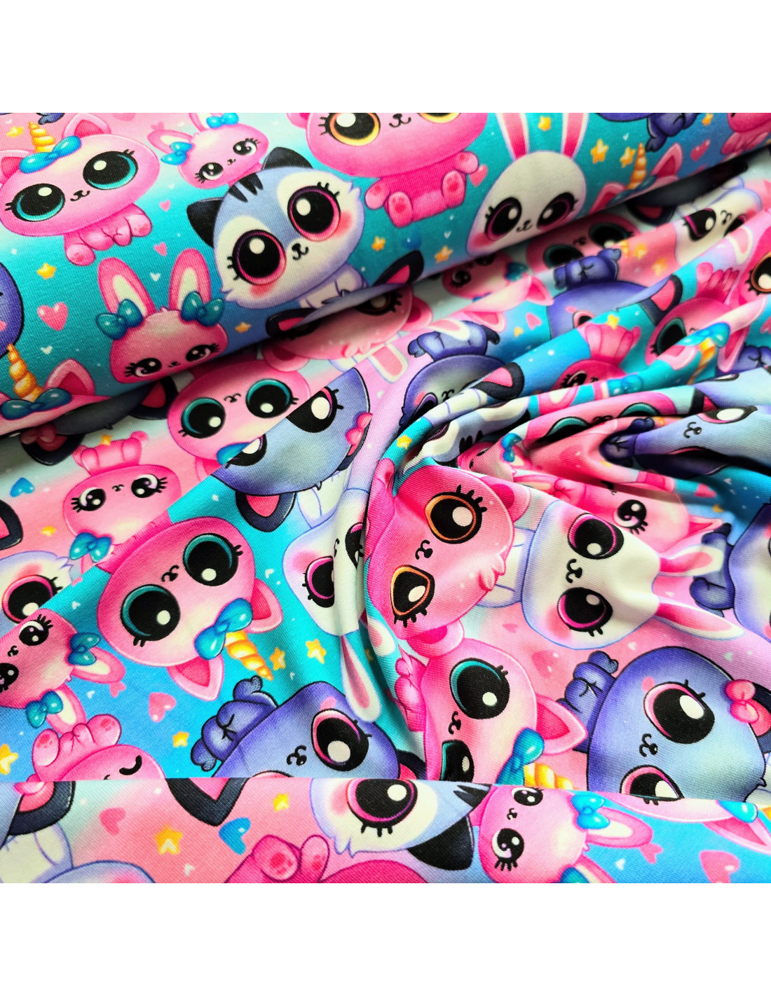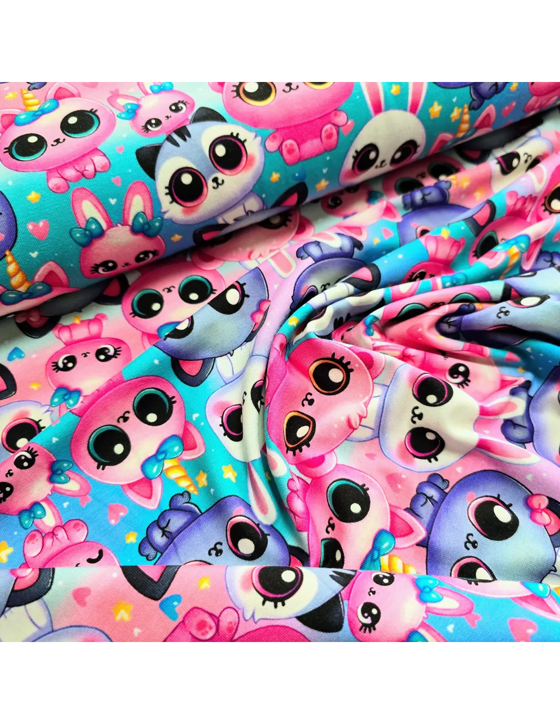Jersey de coton impression digitale, animaux mignons. Superbe pour faire un t-shirt, une robe ou tout ce qui vous plaira !