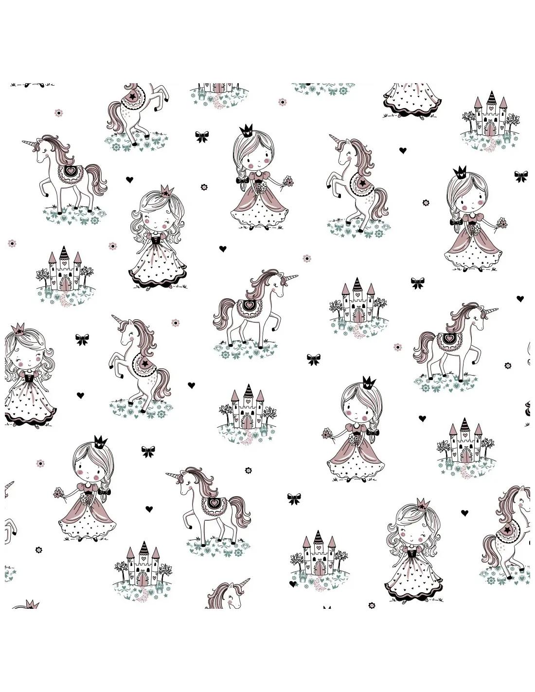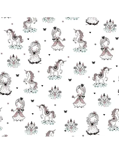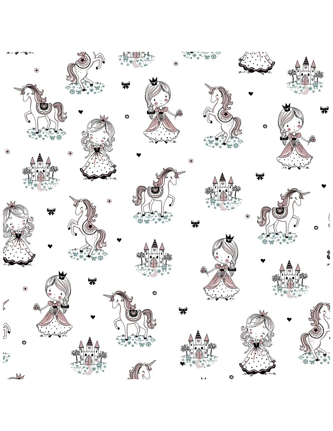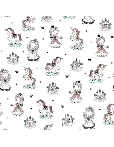 Jersey de coton aux princesses et licornes. Superbe pour faire un t-shirt, une robe ou tout ce qui vous plaira !