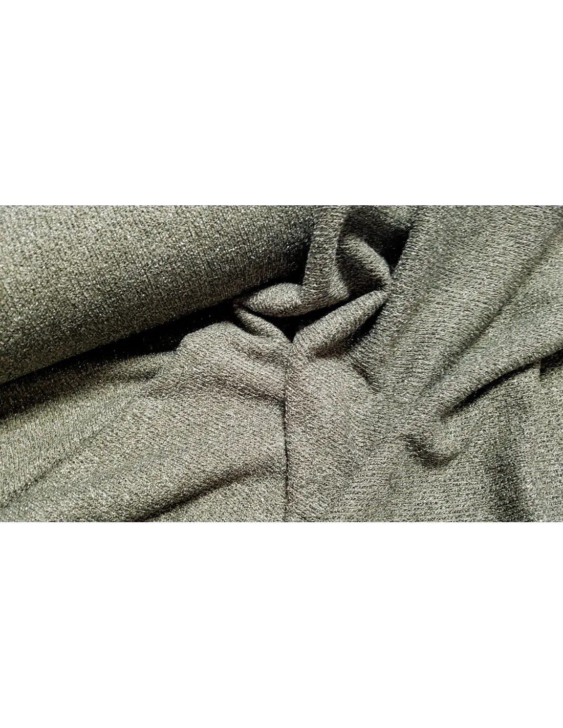 Joli jersey maille lurex et élastique pour la confection de vêtements chics de couleur kaki.