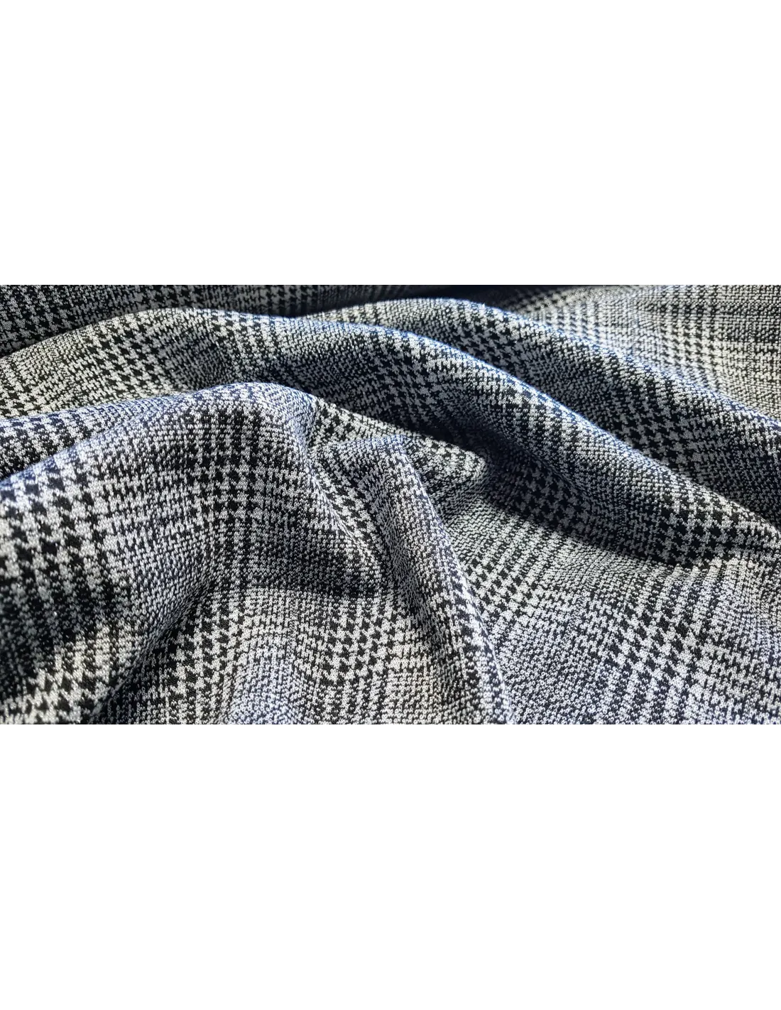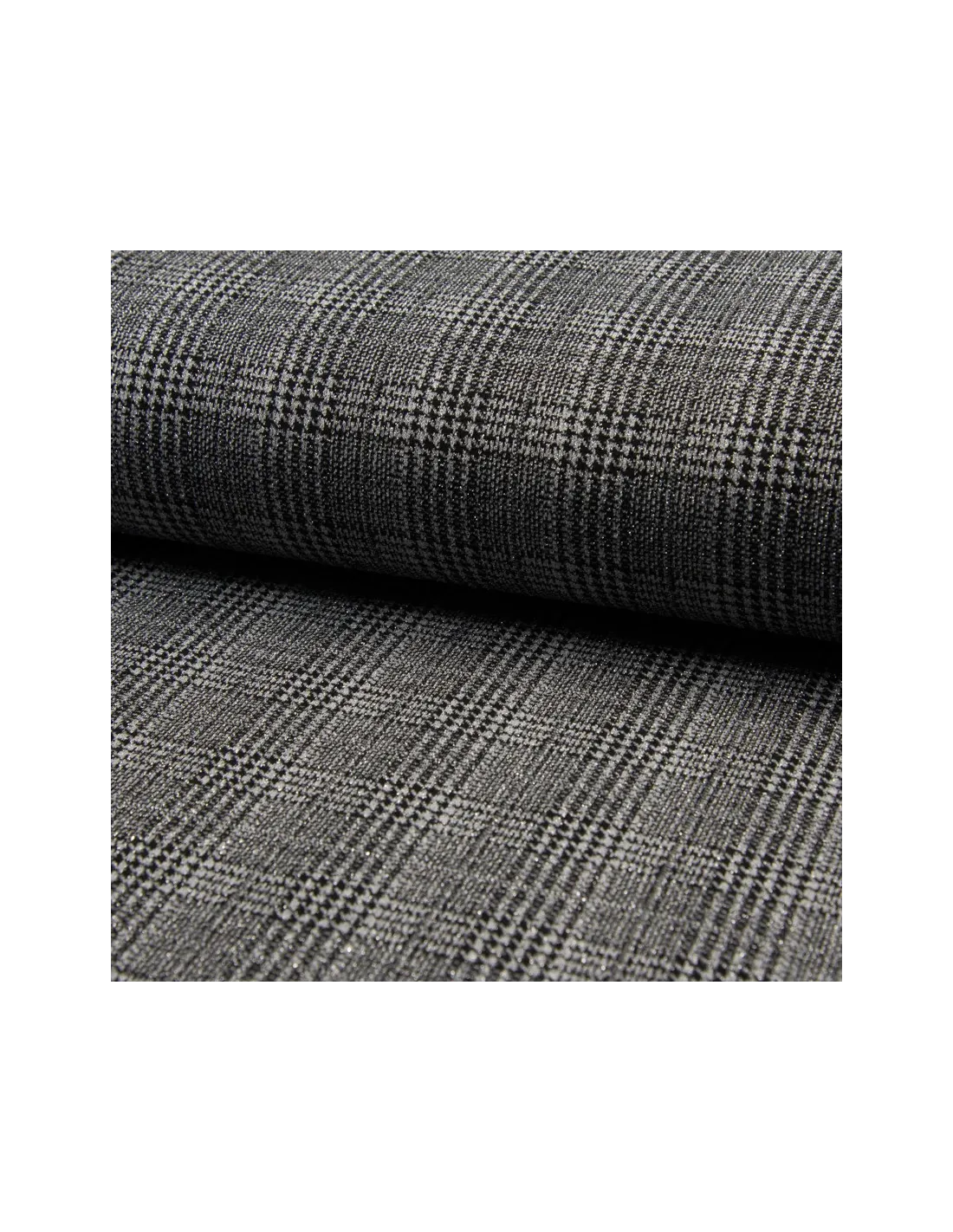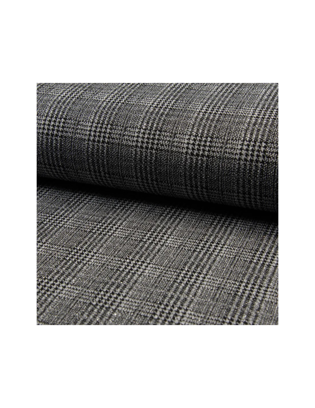 Jersey motif prince de Galles, gris/noir avec touches de lurex argent. Très joli rendu.