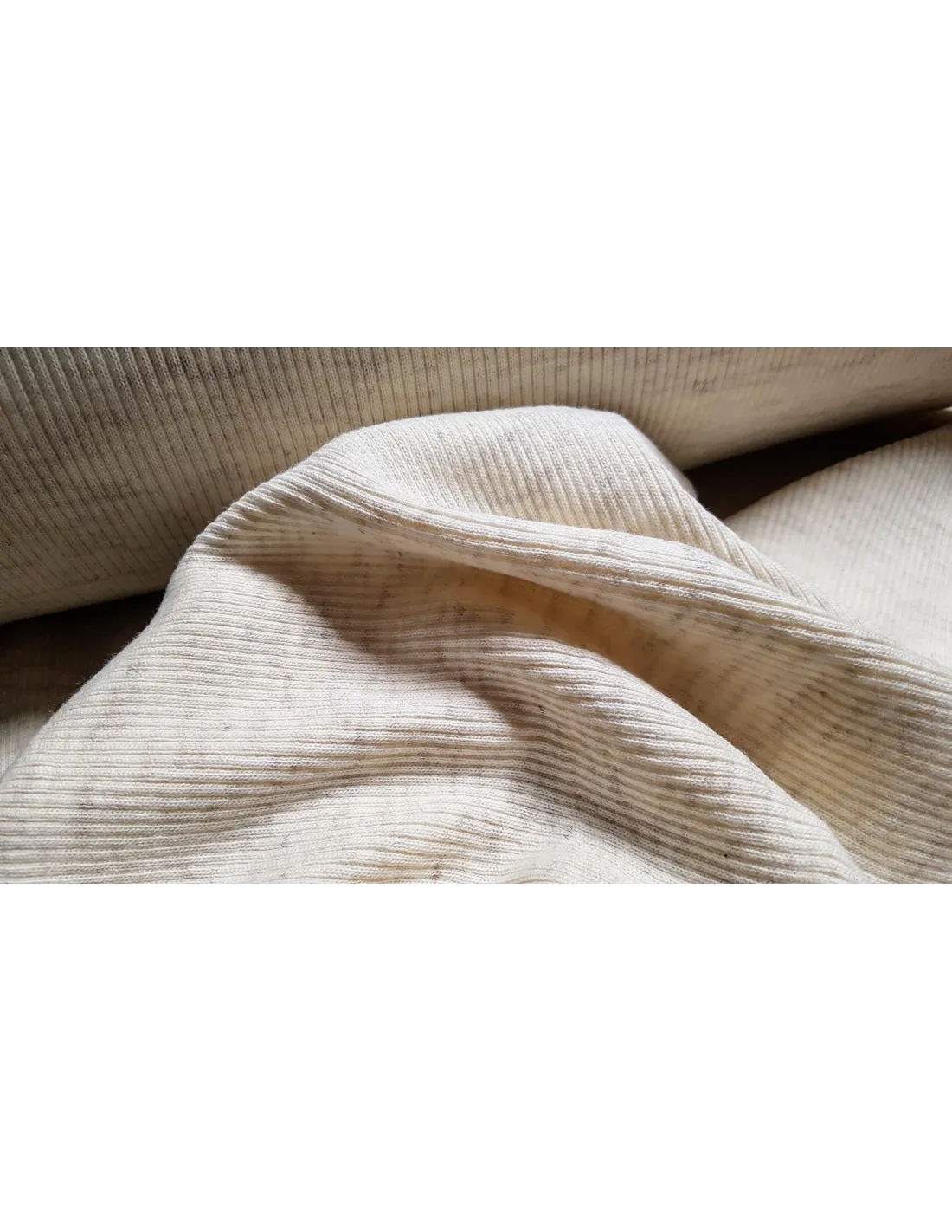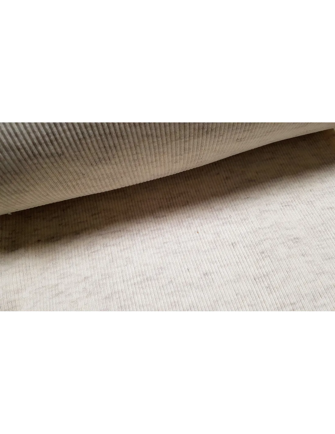 Beau jersey côtelé uni beige ciel chiné. Ce tissu peut également être utilisé pour la confection de poignets et bas de blousons comme le bord cote.