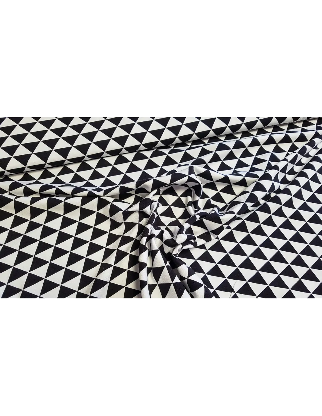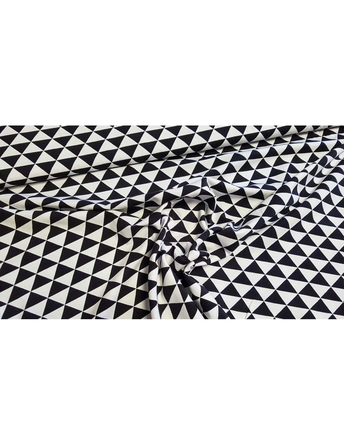 Jersey de coton à imprimés triangles blancs et noirs.