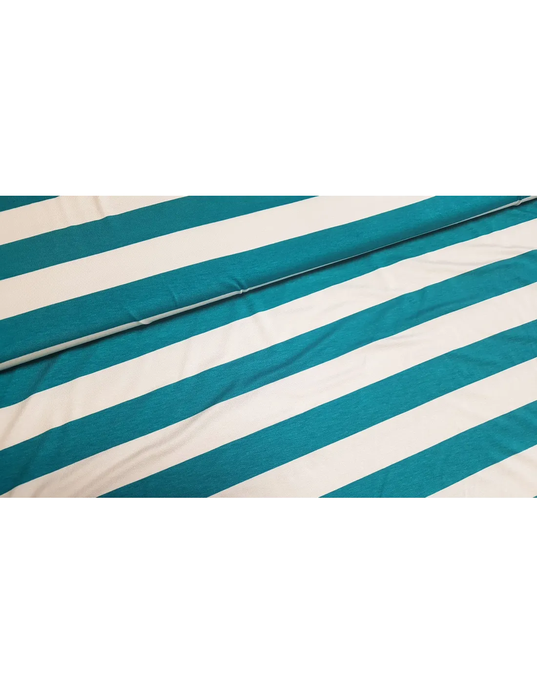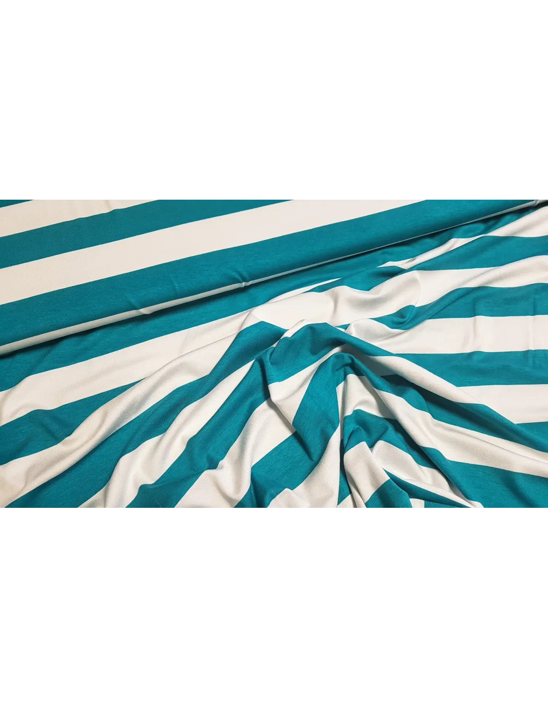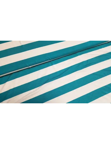 Jersey de viscose à imprimés rayures turquoises et blanches.