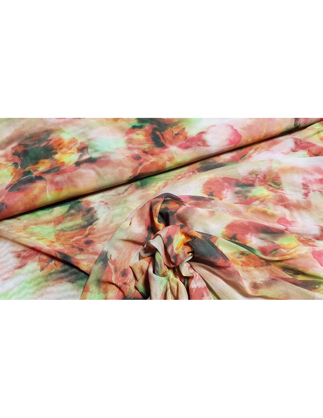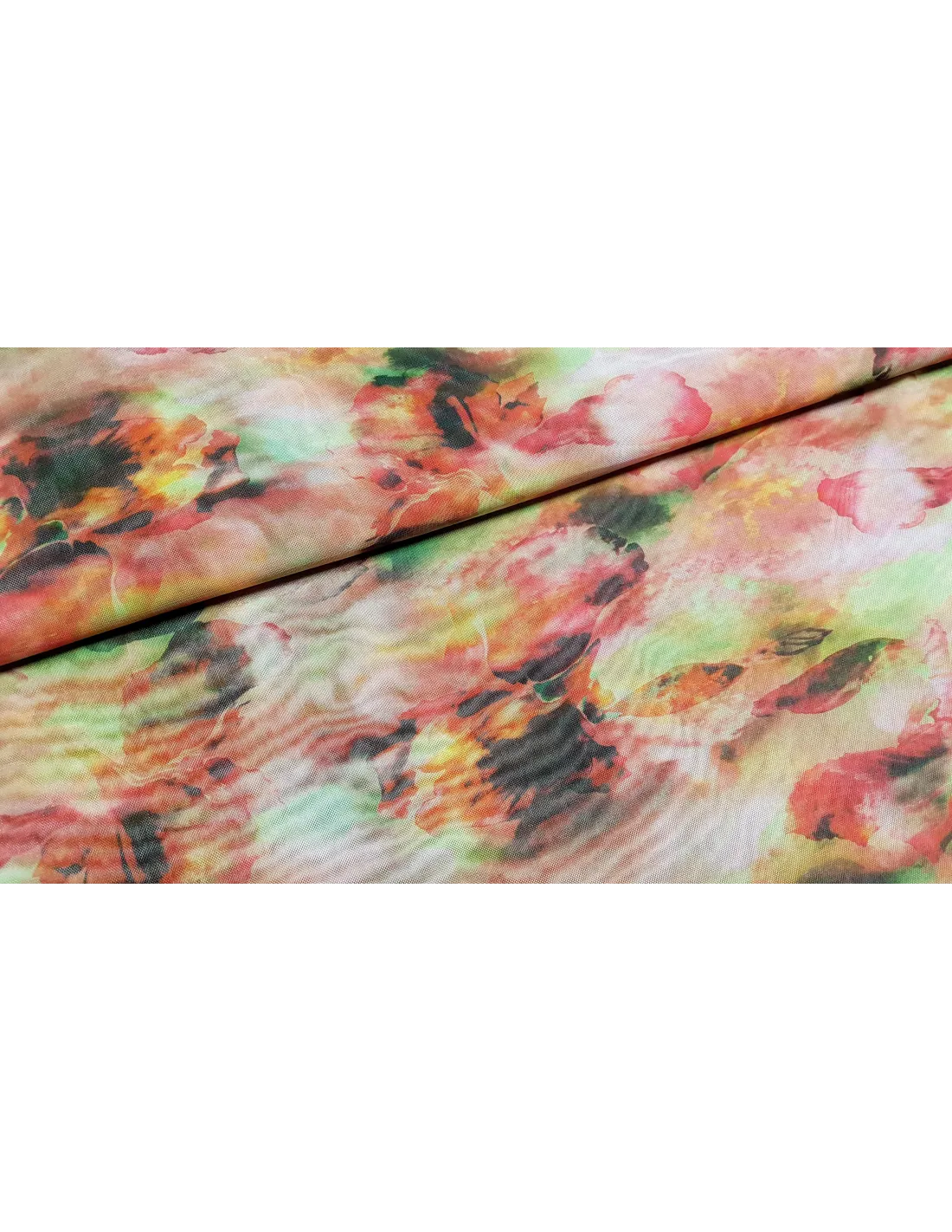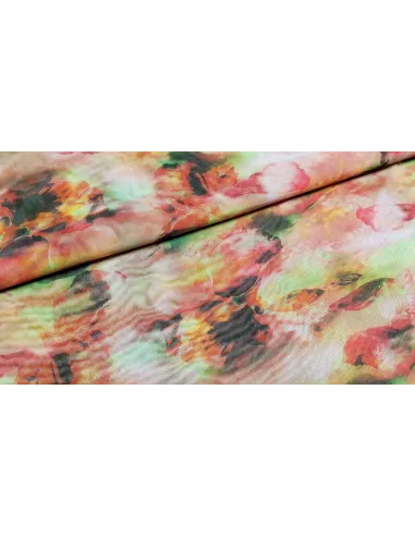Jersey maille stretch fleuri dans les tons de rose. Ce tissu léger possède une transparence.