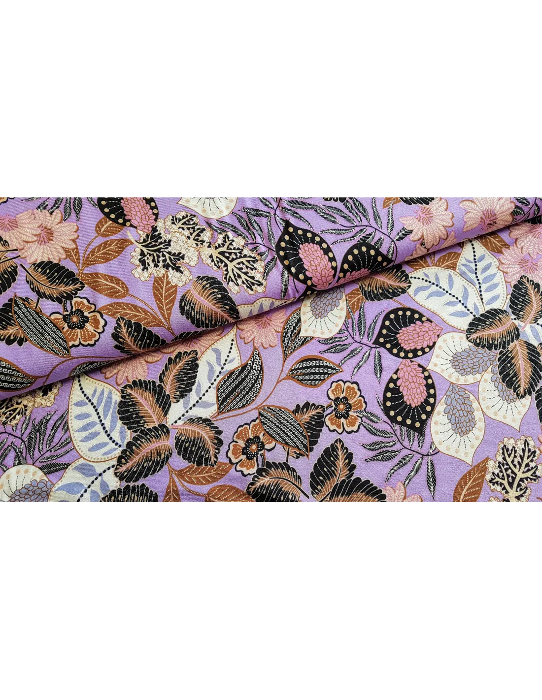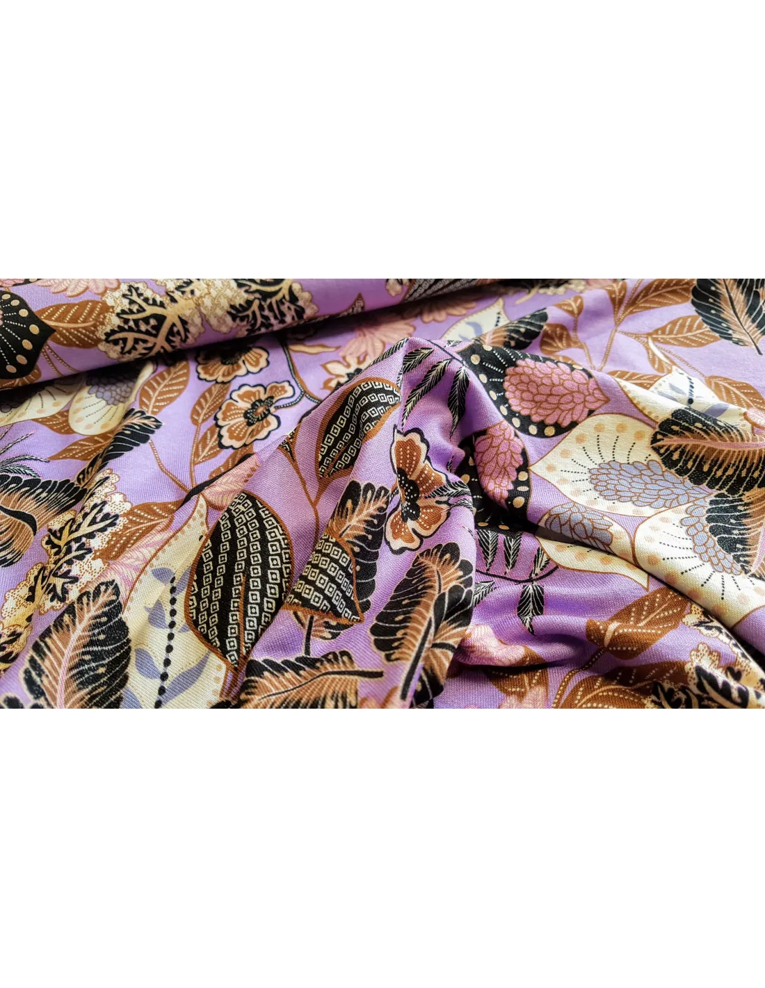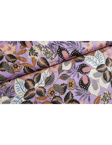 Jersey de viscose à imprimés fleuri dans les tons de violet.
