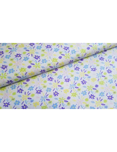 Jersey de coton à imprimés fleuri sur fond blanc.