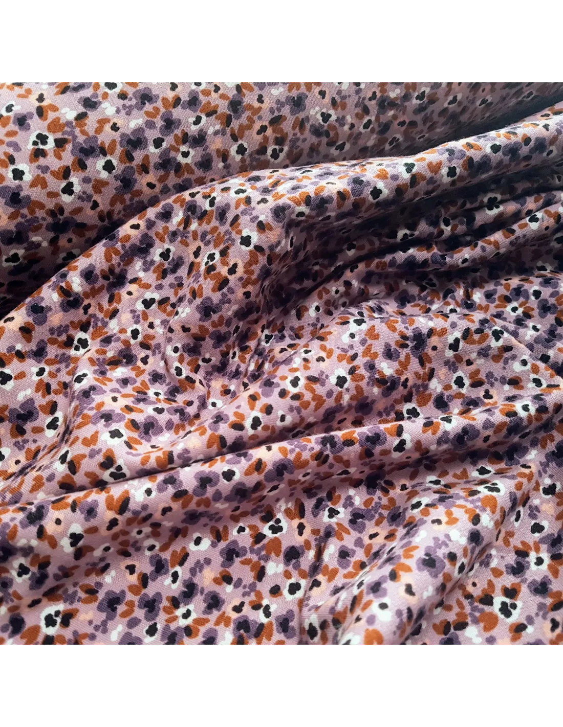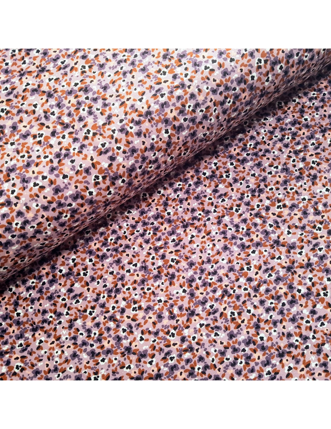 French terry coton, envers gratté pour plus de douceur, impression digitale fleurs sur fond mauve. Un peu plus épais qu'un jersey de coton simple. Superbe pour faire un t-shirt, une robe ou tout ce qui vous plaira !
