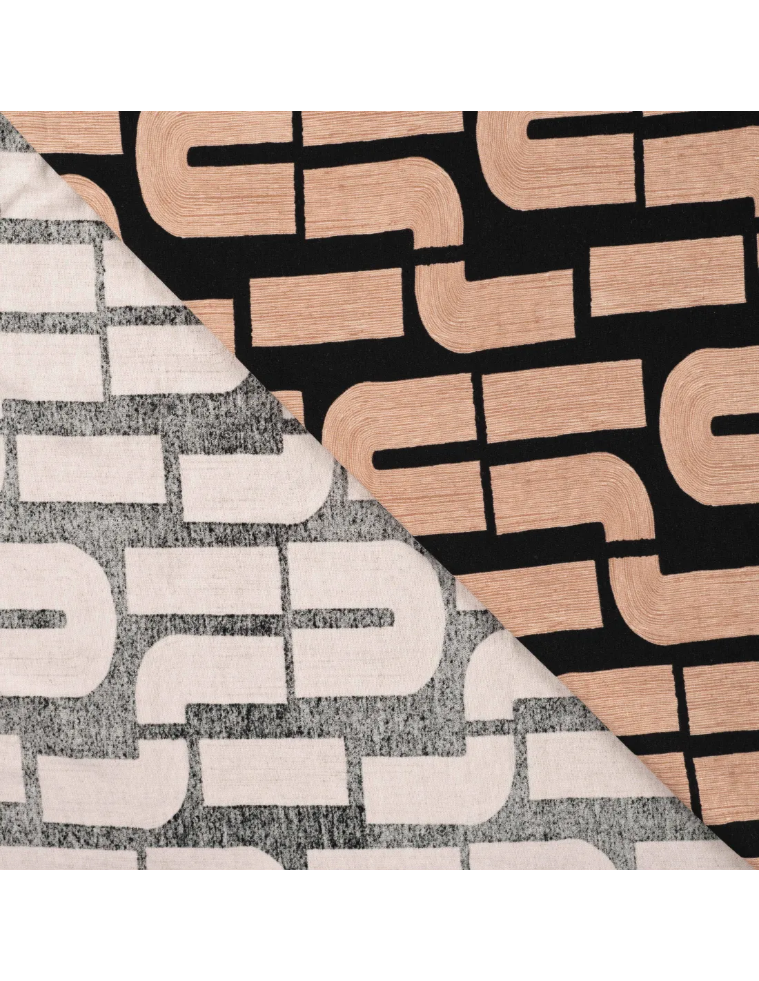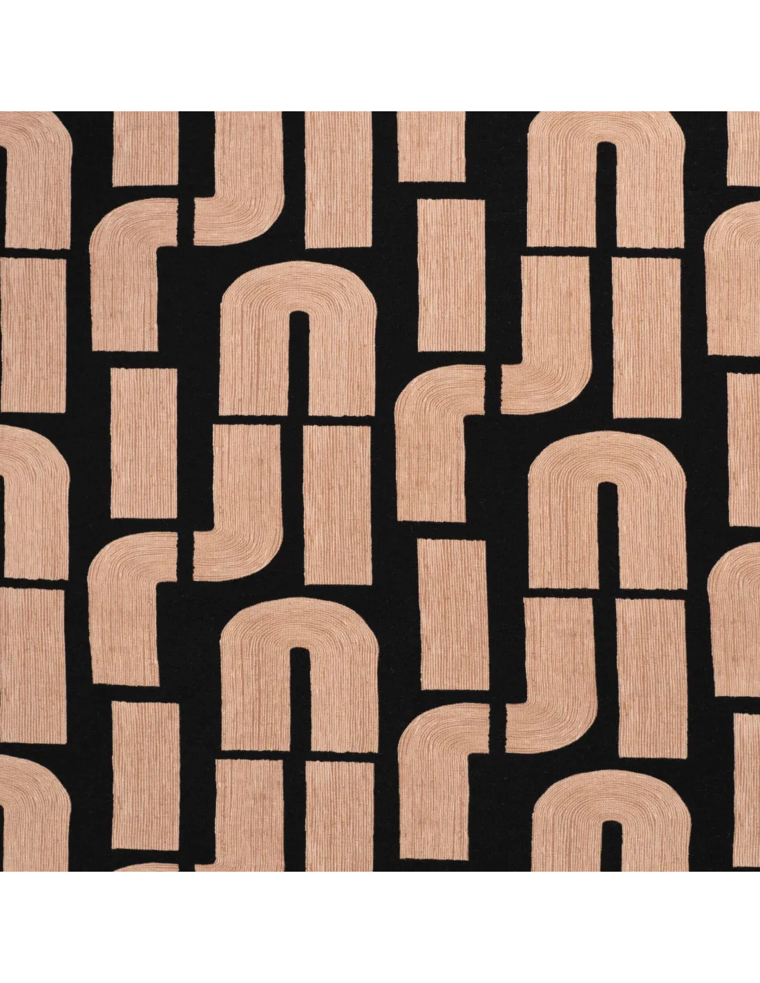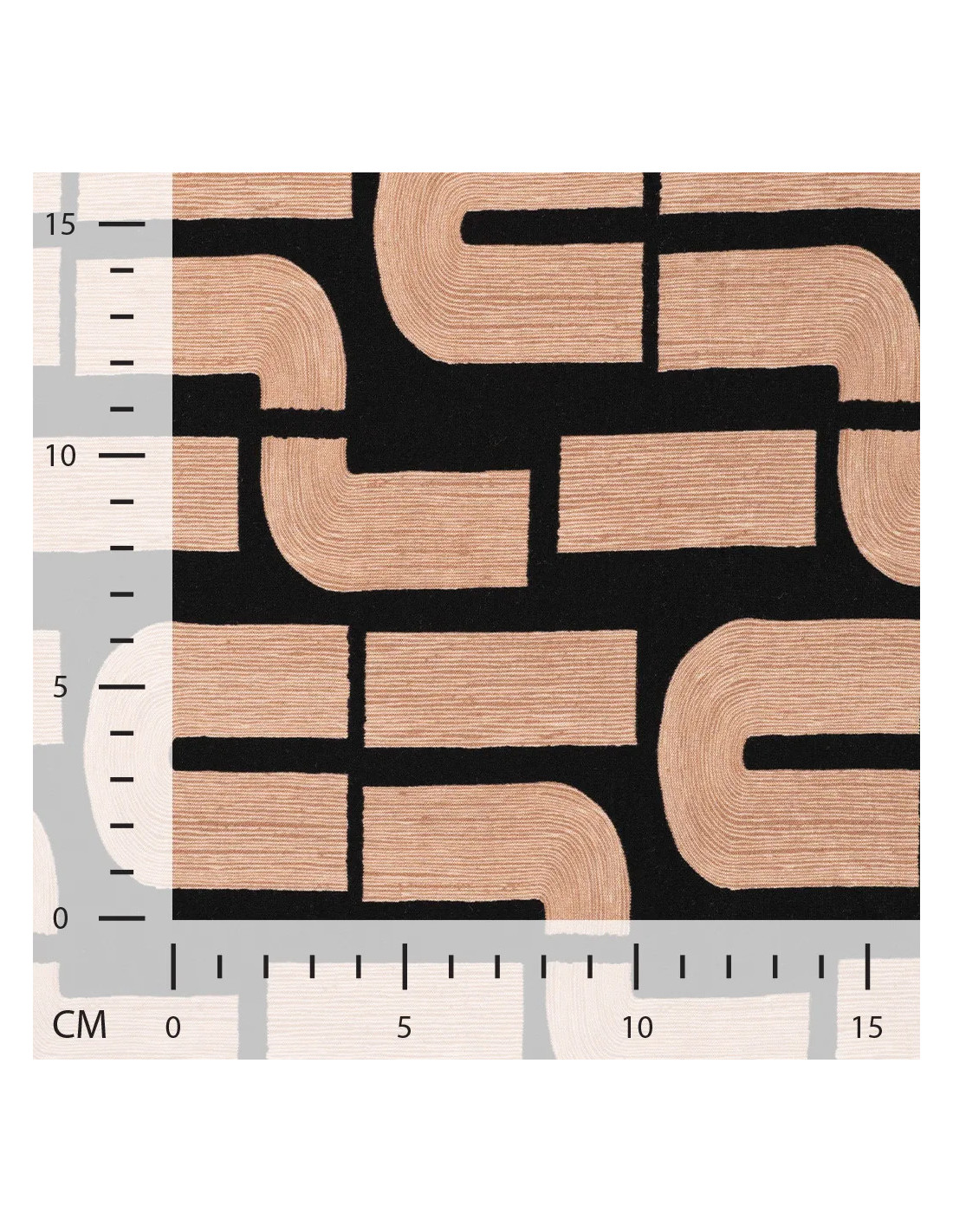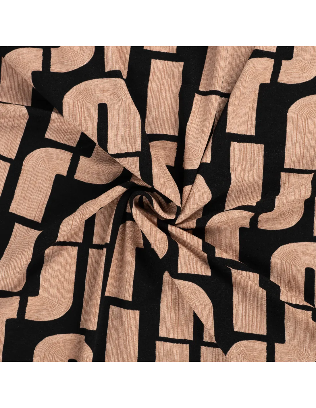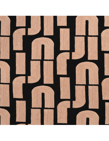 Jersey de viscose imprimé motifs tubes graphiques sable sur fond noir. Superbe pour faire un t-shirt, une robe ou tout ce qui vous plaira !