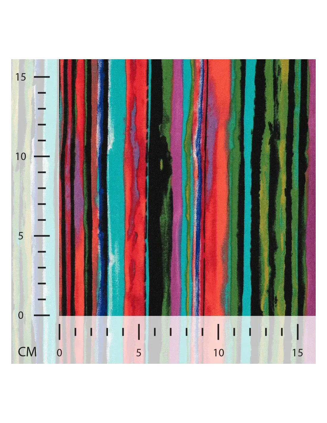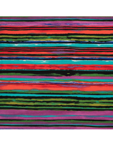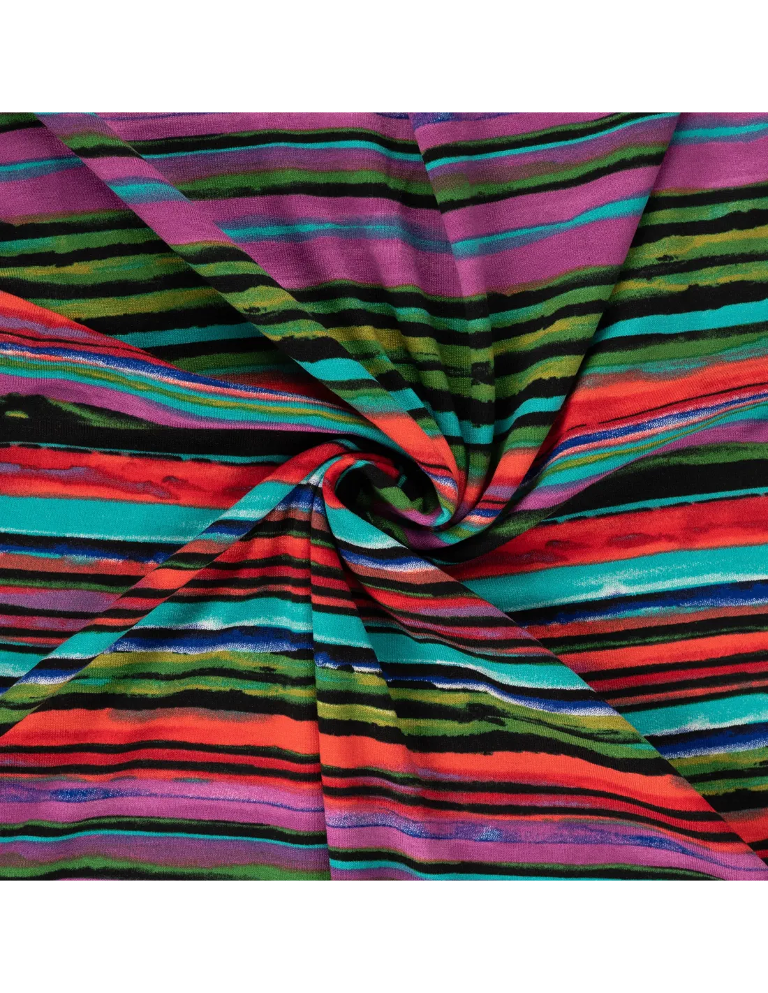 Jersey viscose imprimé rayures colorées. Superbe pour faire un t-shirt, une robe ou tout ce qui vous plaira !