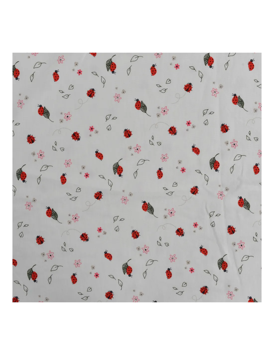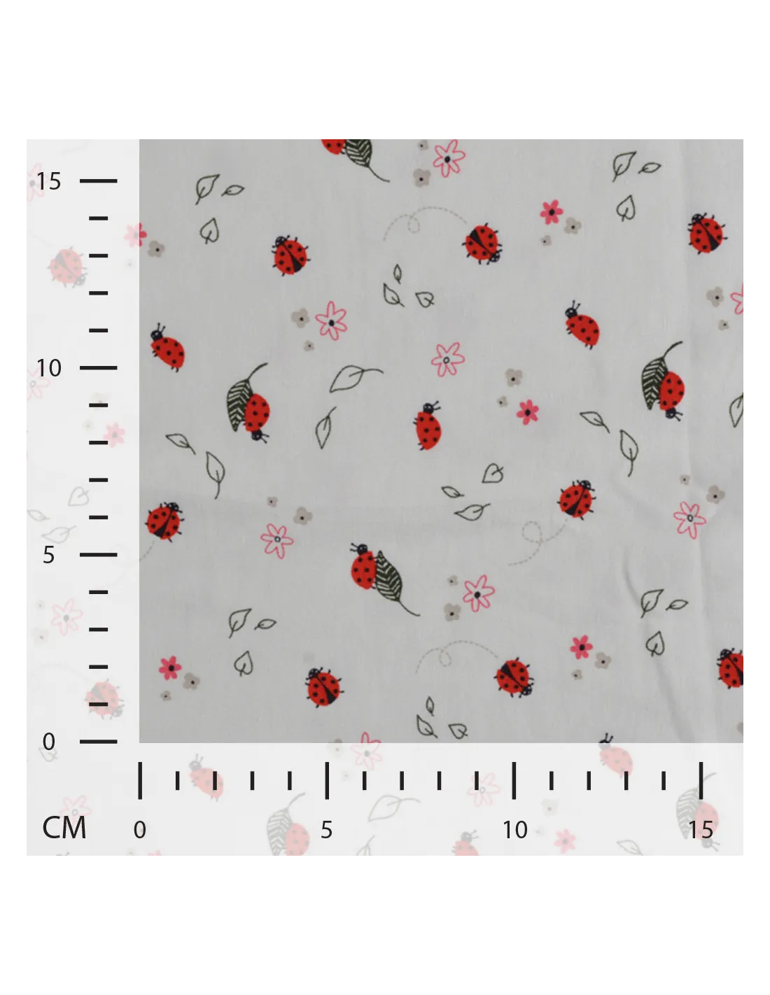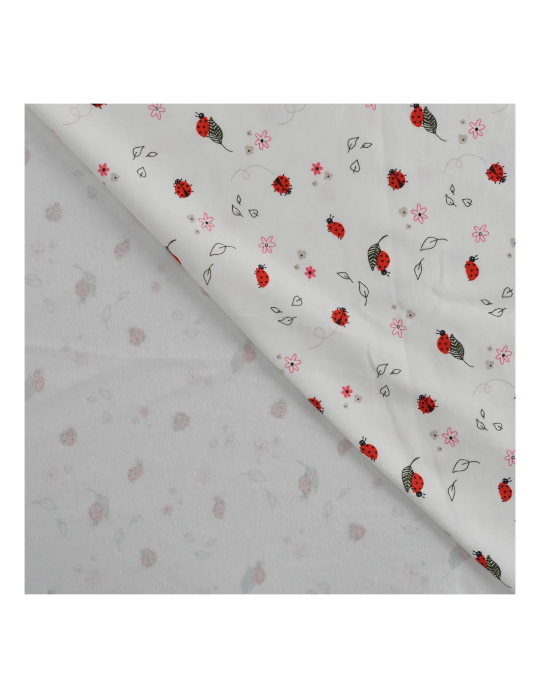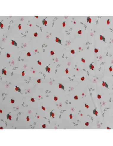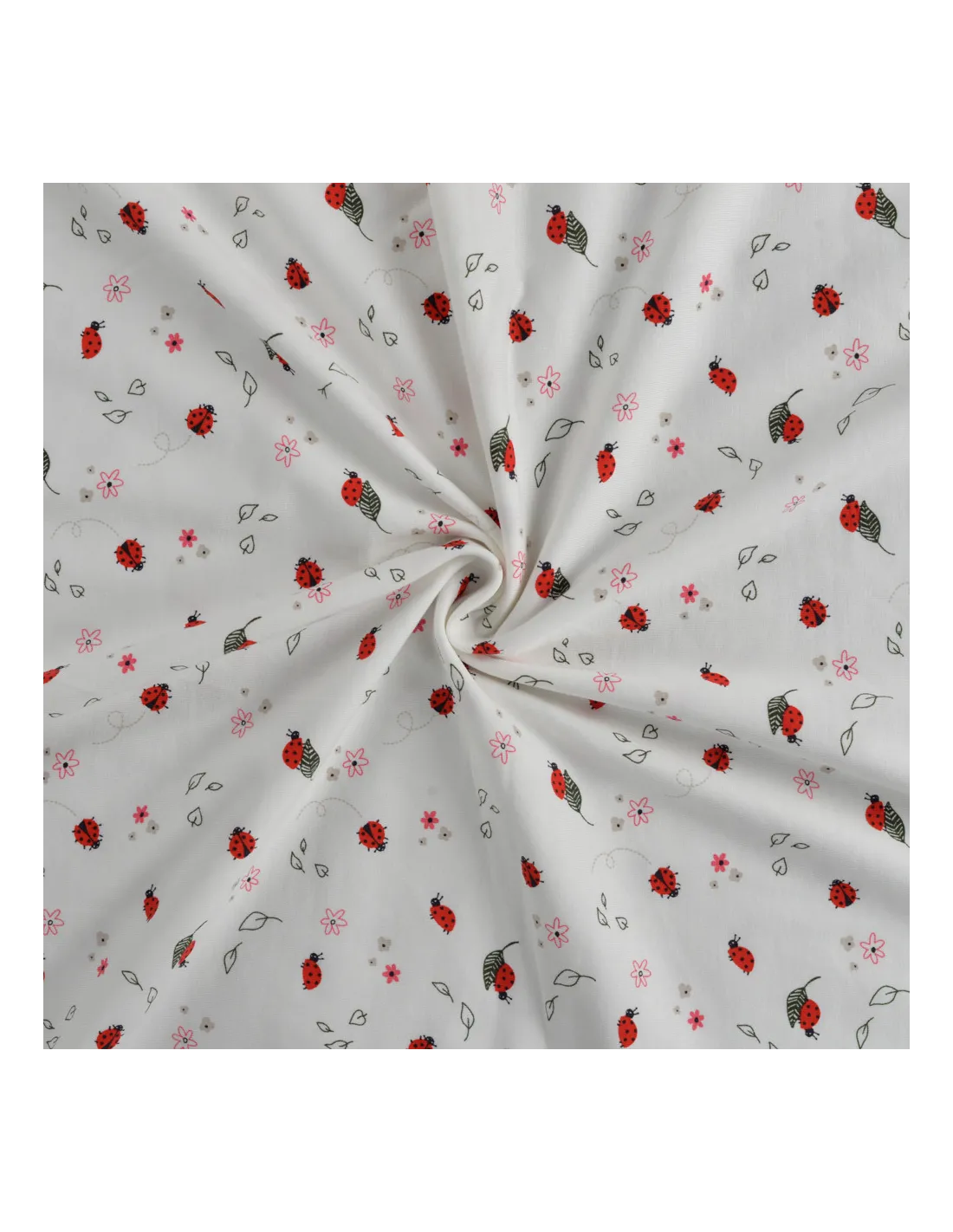 Apportez une touche de nature et de chance à vos projets avec ce jersey de coton de haute qualité. Son motif iconique de petites coccinelles sur un fond blanc pur en fait un tissu joyeux, idéal pour des créations pleines de vie et de douceur.